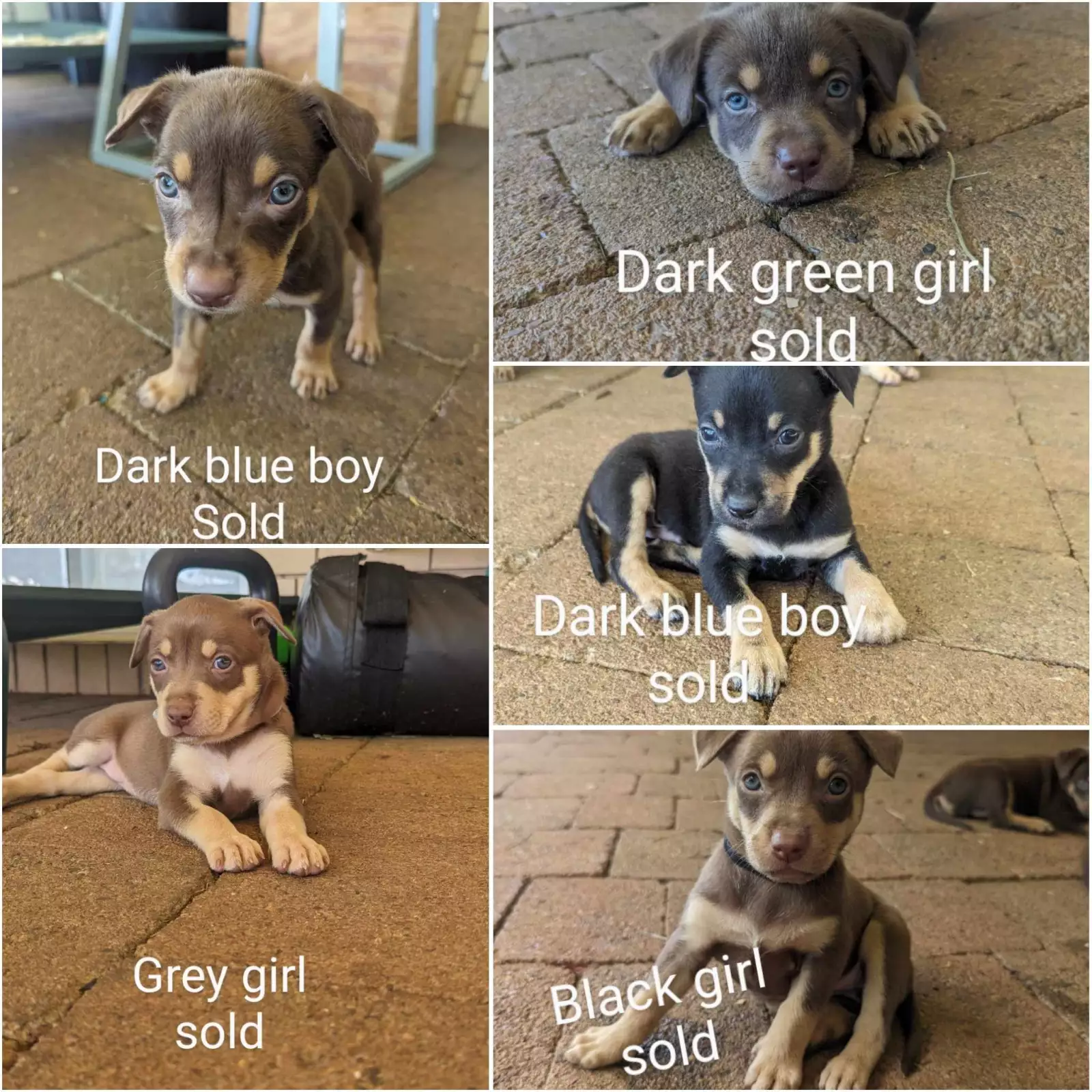 7 Purebred Kelpie Puppies for sale Ready to go next week 9 Girls and 3 Boys Dark green girl - sold Dark blue boy - sold Light blue boy - sold Grey girl - sold Black girl - sold Both the mother and father are purebred and have beautiful natures. Puppies will be raised around other dogs and kids so they will suit a family home. All pups will be vet checked, vaccinated, wormed and microchipped. P You are more than welcome to come a view the puppies at any stage and if you are chasing more photos just let me know. A deposit will be required to secure your puppy Mothers microchip #: 953010004963206 BIN0014157907175 Please contact Holly on 0448985489