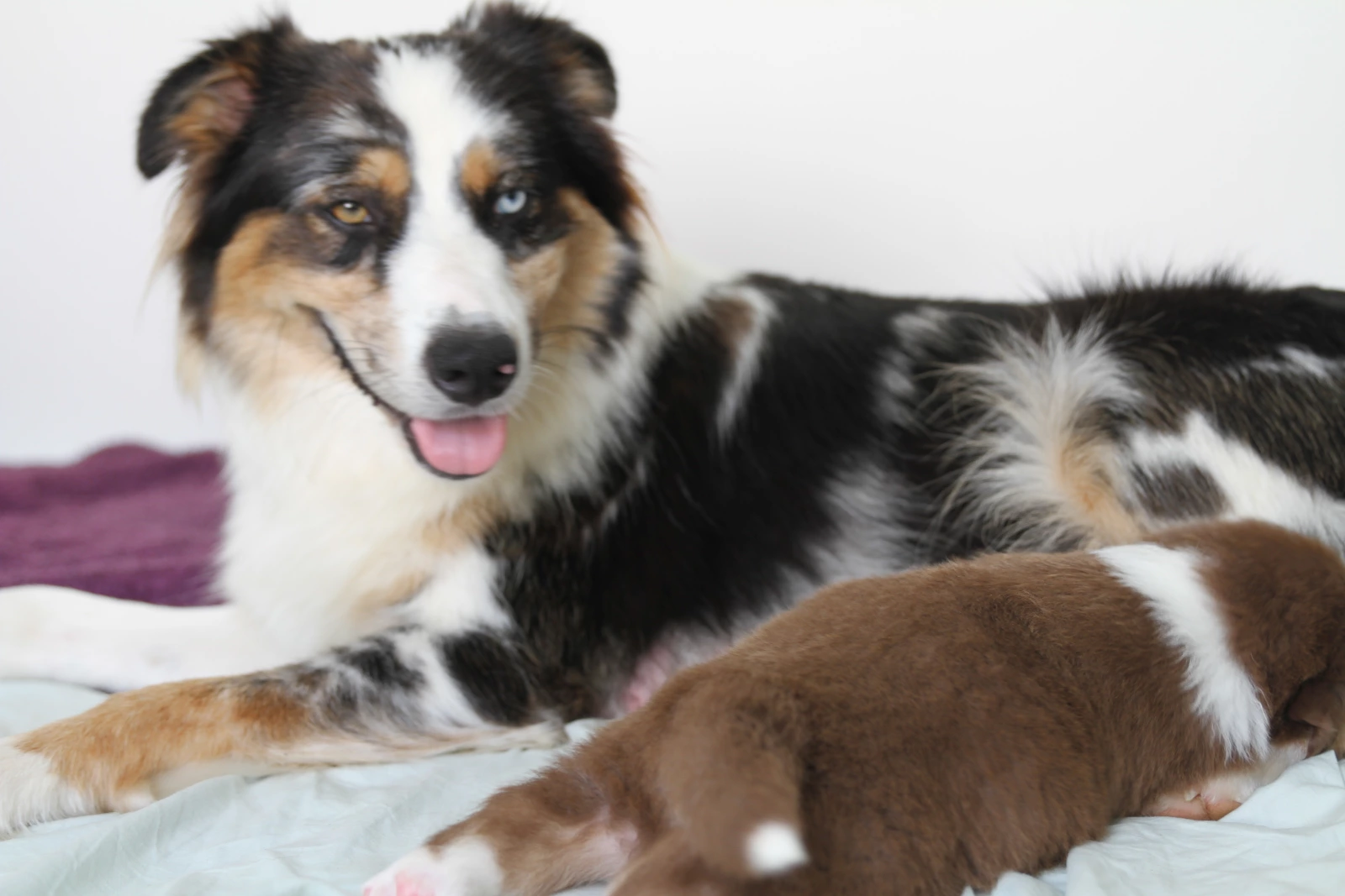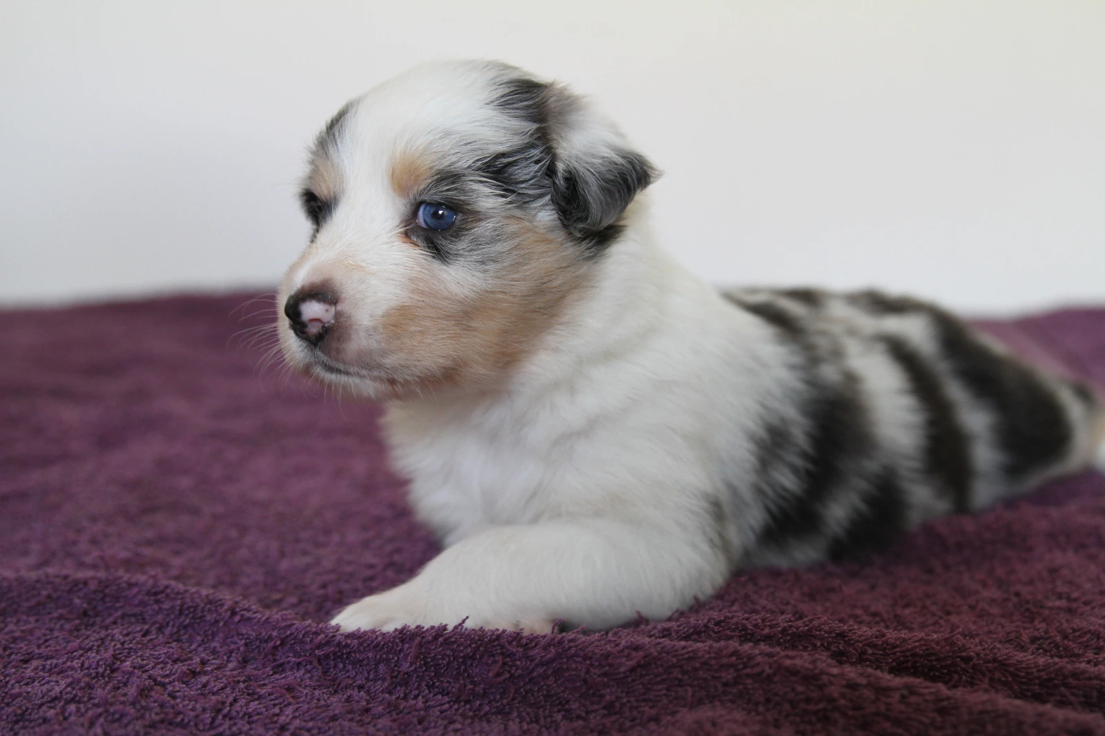 Purebred Australian Shepherd puppies, six weeks old and growing well.
