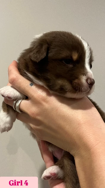 4 Male and 4 Female Pure bred Australian Shepherd puppies of varying colours as listed below.