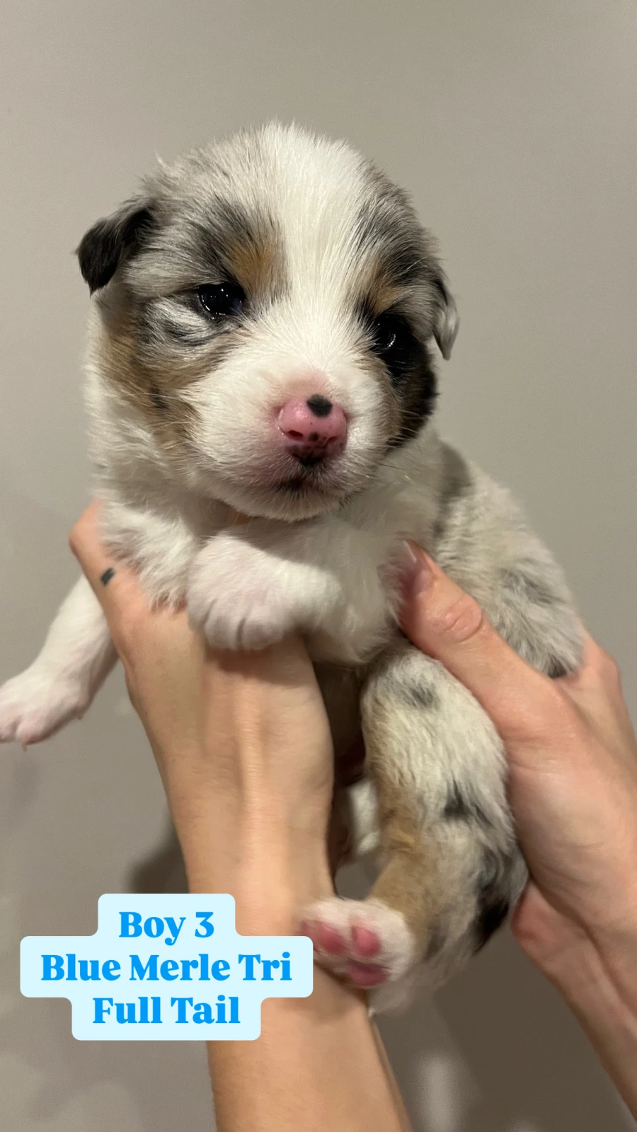 Male 3: Blue Merle Tri, Full Tail (Sold)