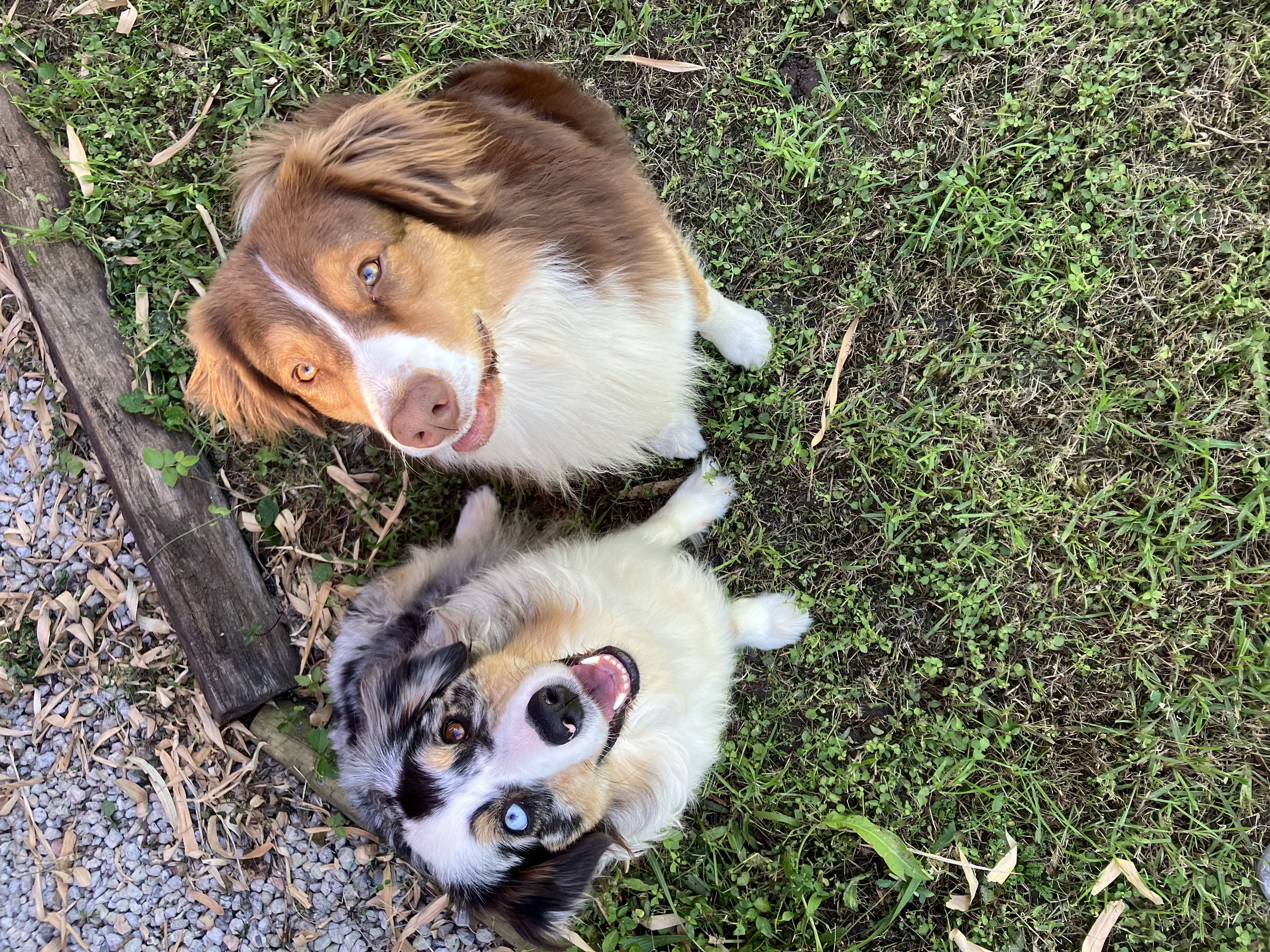 Mum is a purebred blue Merle Aussie with a natural bobtail and dad is a purebred red tricolour Aussie with a full tail.