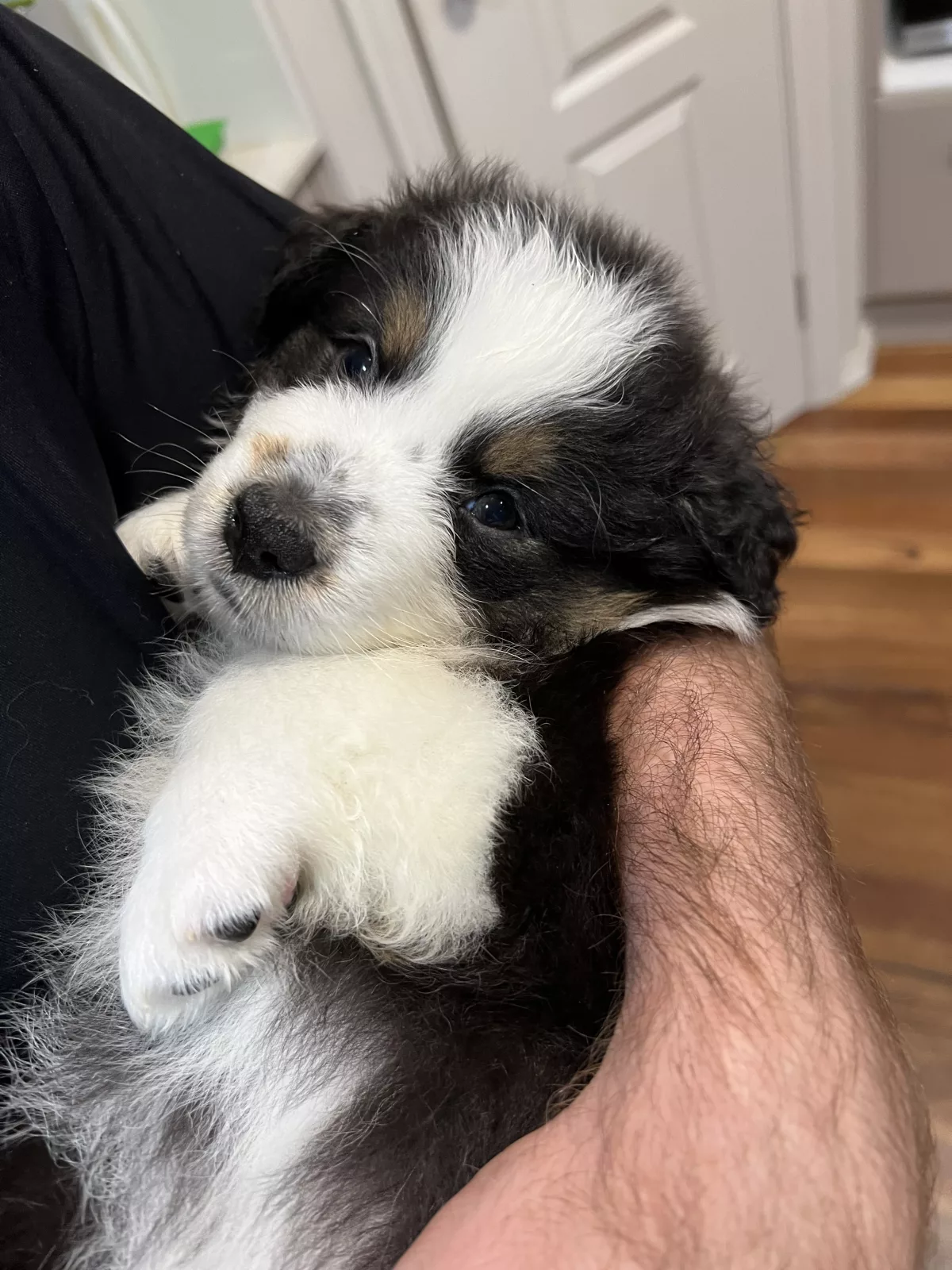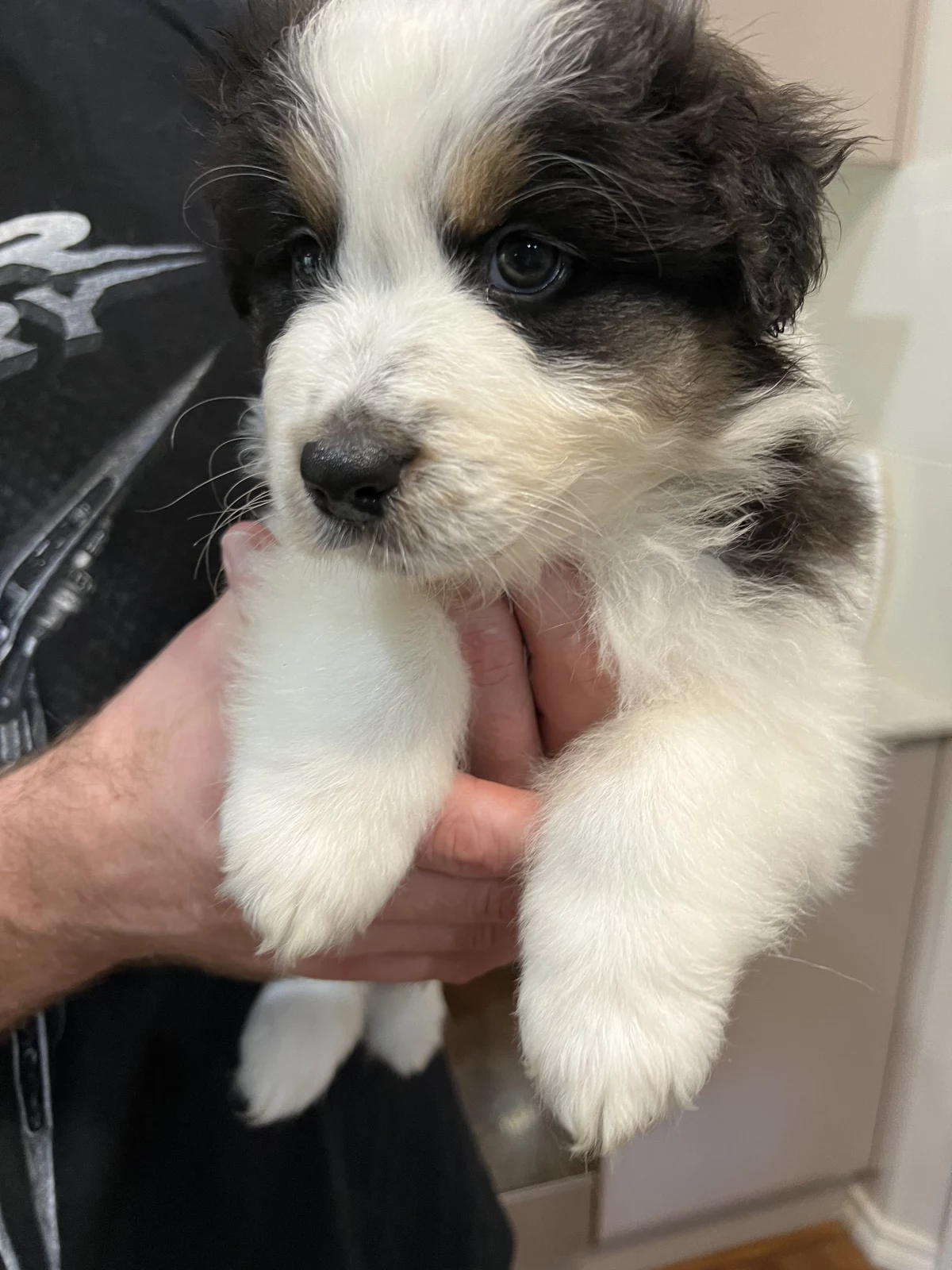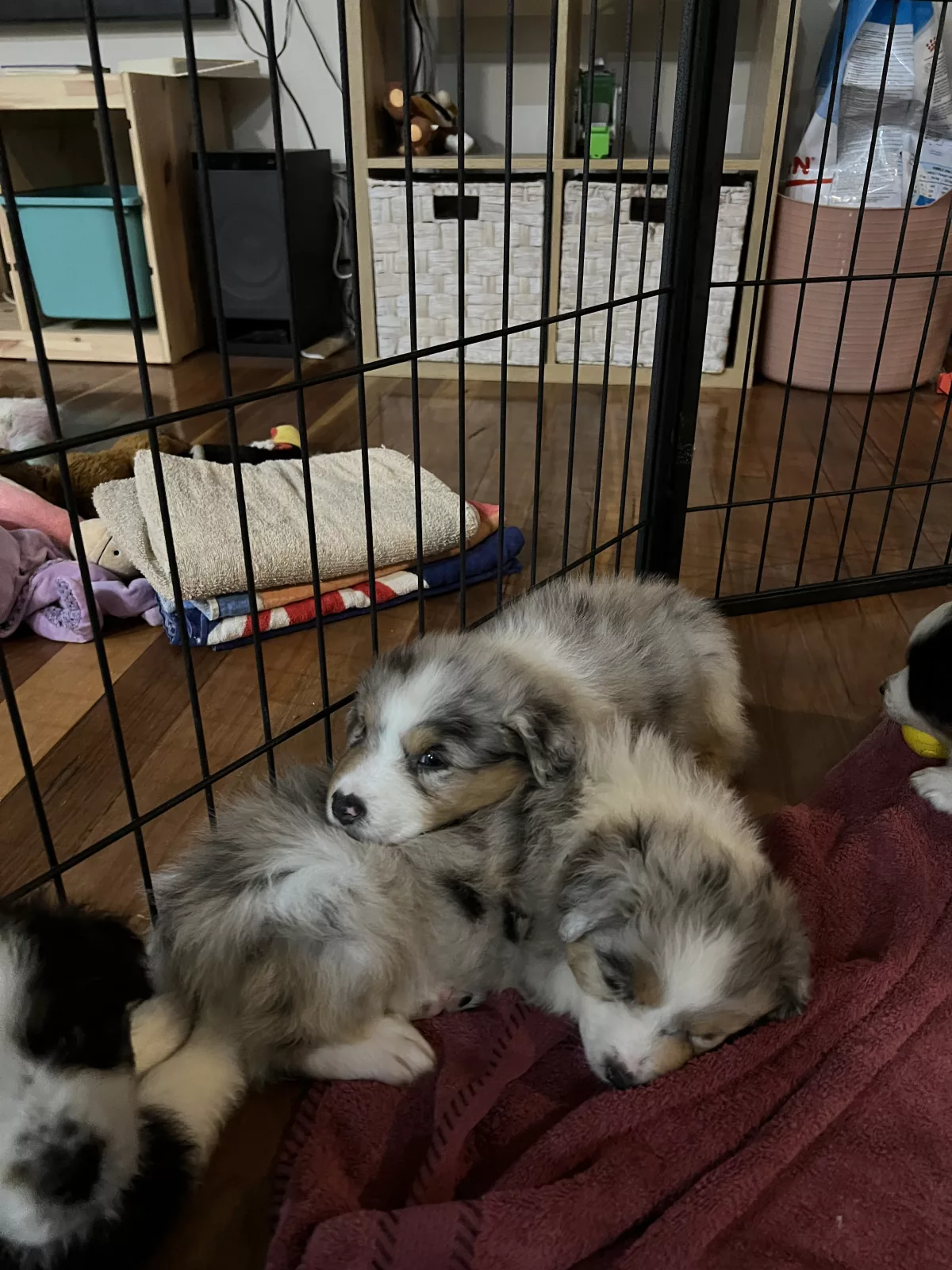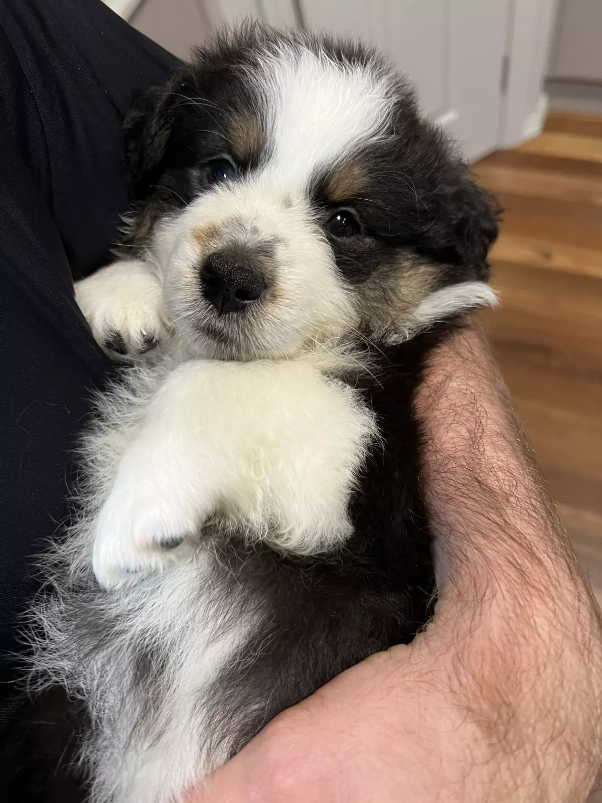 Two female Black Tri pups, one male Black Tri, and one male Blue Merle are currently available.