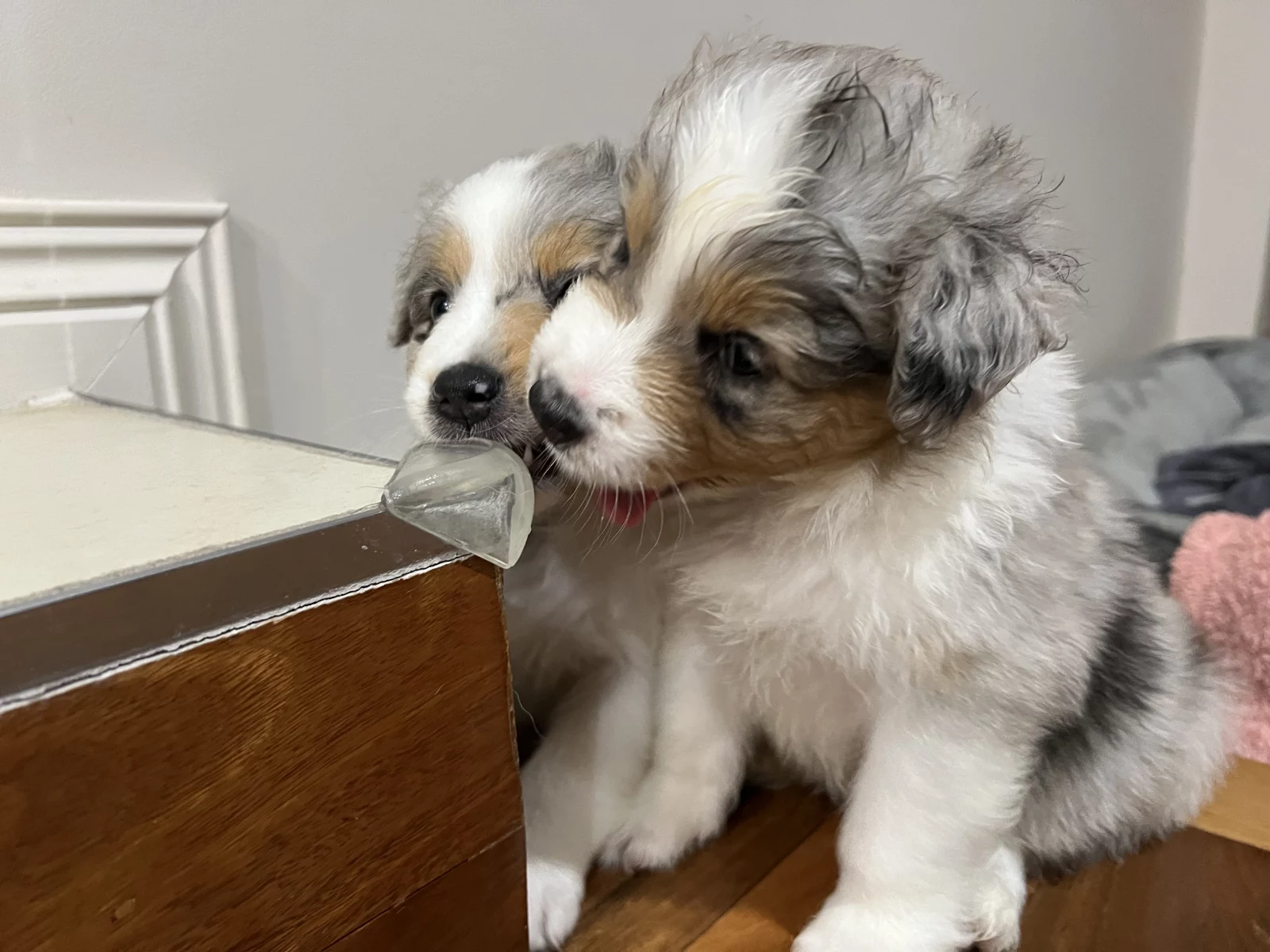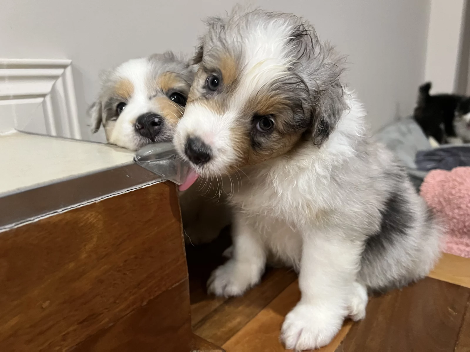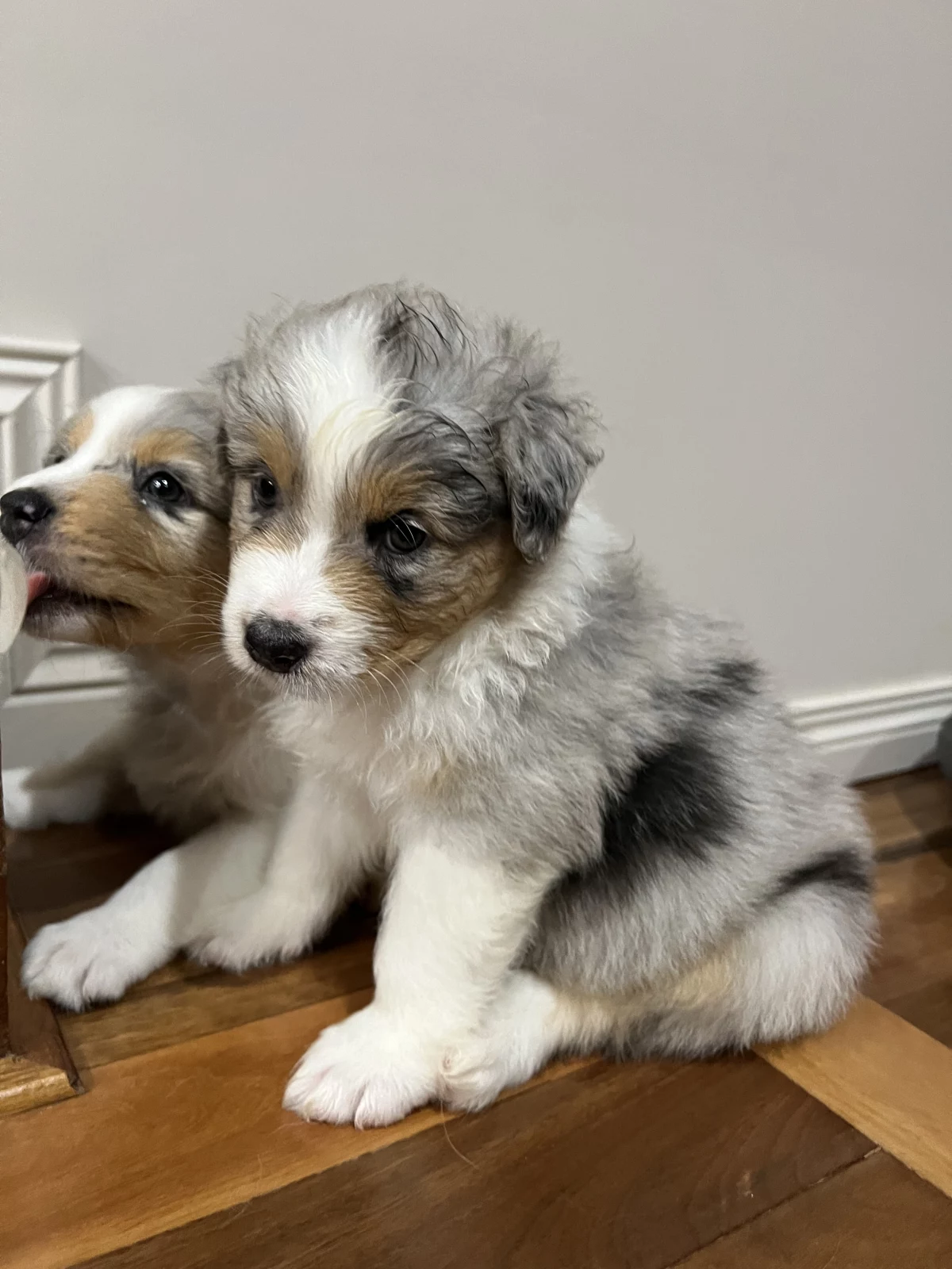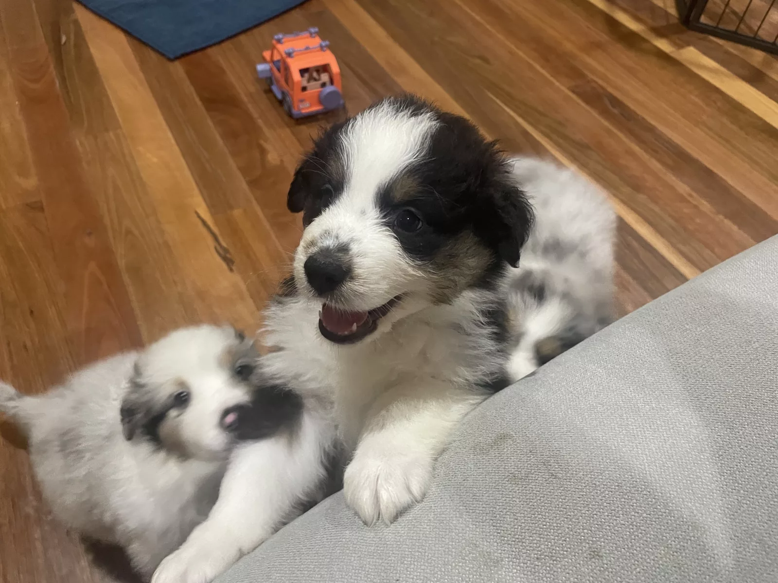 Two female Black Tri pups, one male Black Tri, and one male Blue Merle are currently available.
