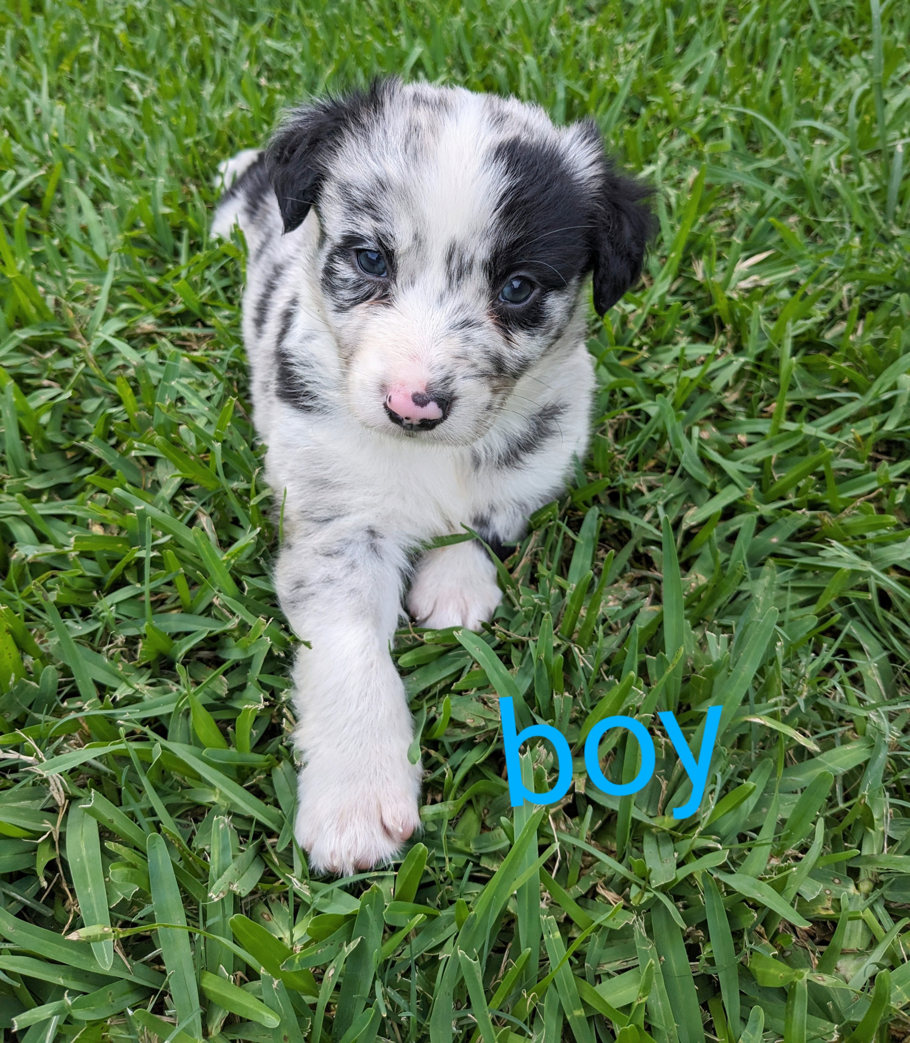 Sire is an Aussie Border, his father is working line blue tri merle Aussie and mother is a black and white Collie.