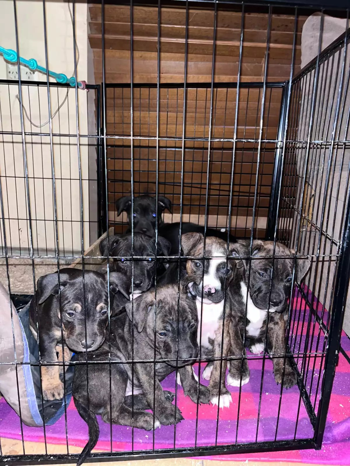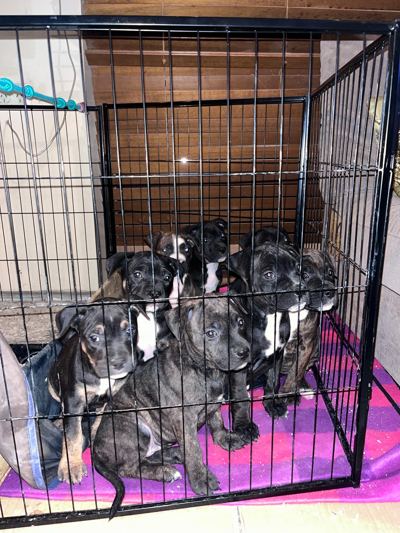 Dogs have access to: warm bedding, water at all times, ample space to exercise, natural light