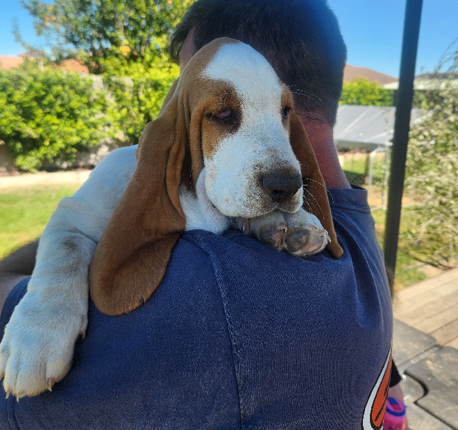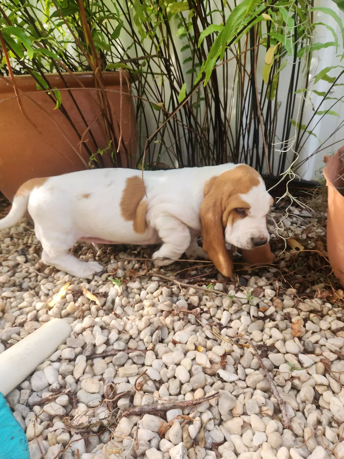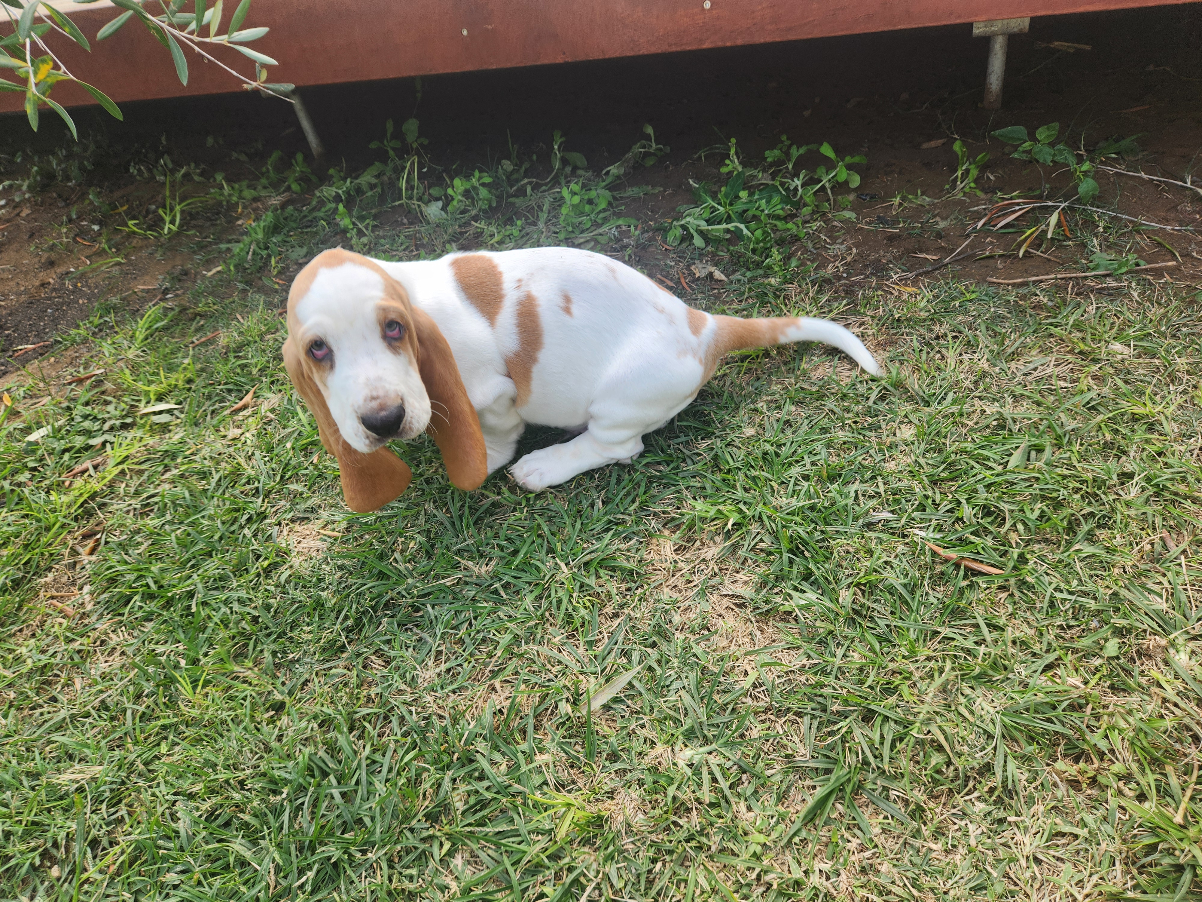 White and tan male Basset Hound pups available and looking for their forever homes.