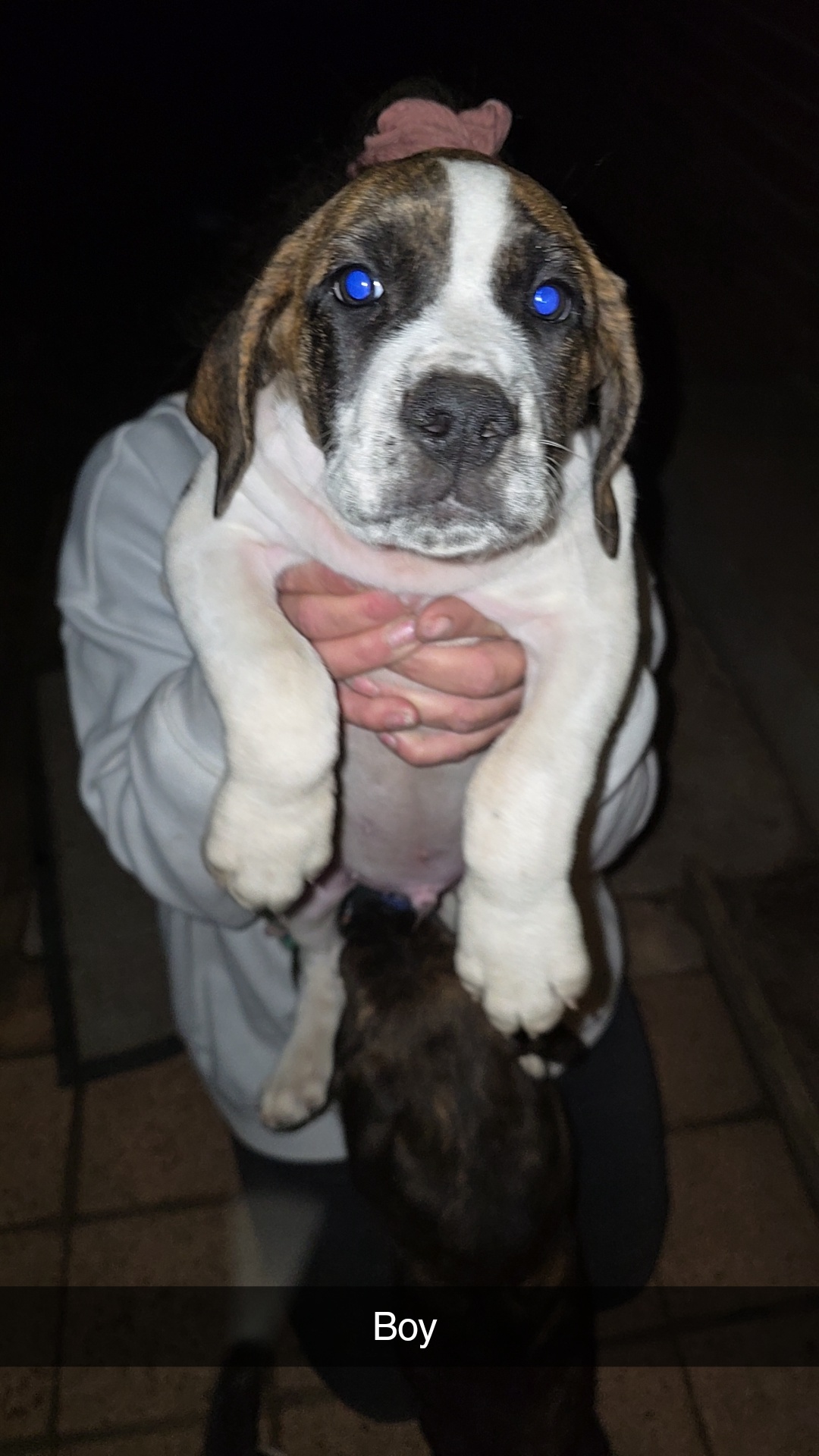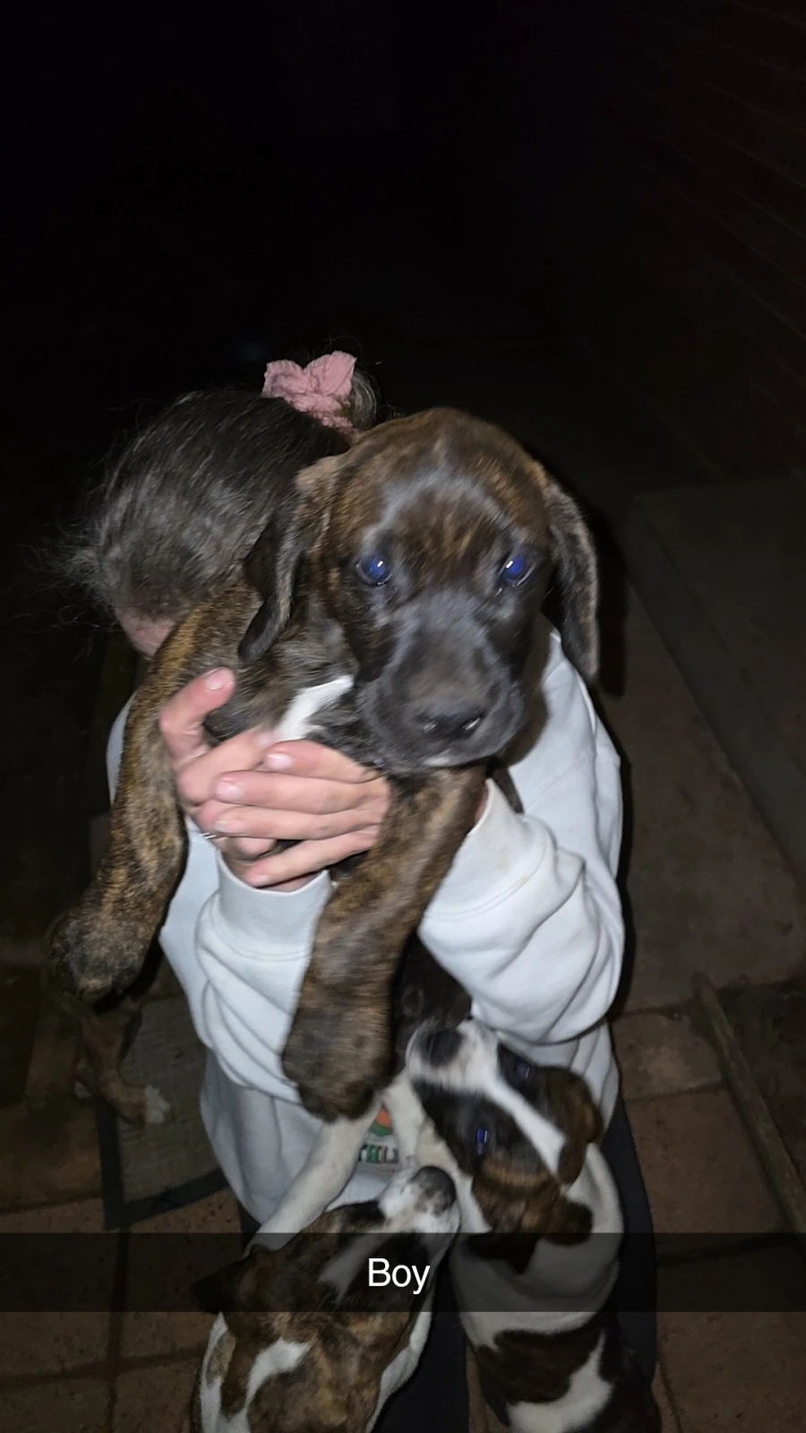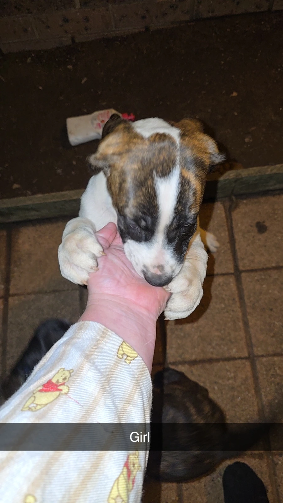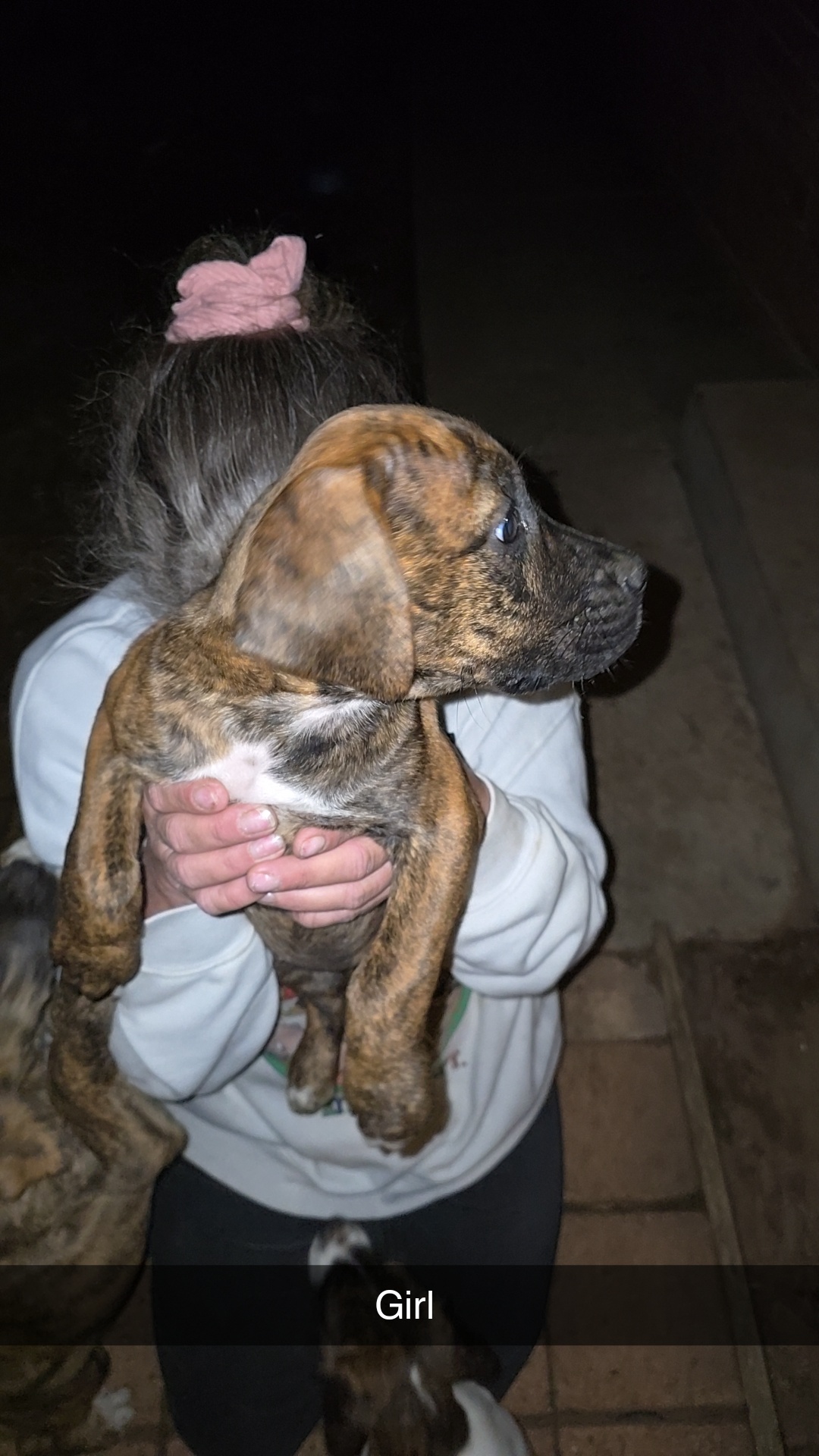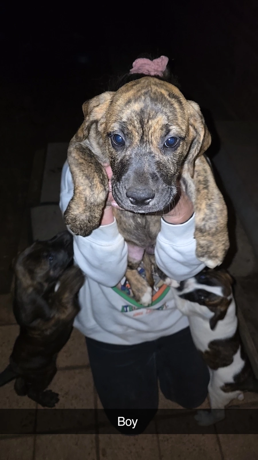 This mix offers a great combination of loyalty and intelligence: Mum Is Beagle x Harrier and Dad is Bull Arab x Staffy. They are expected to grow into medium-to-large, devoted companions with an energetic and affectionate demeanour.