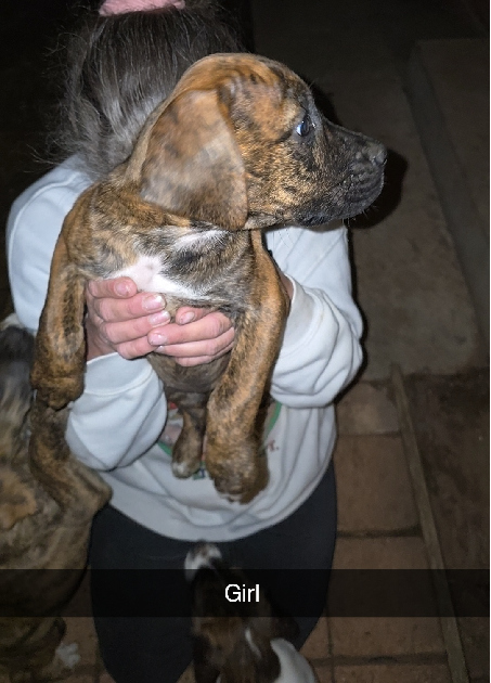 This is a robust and loving mix: Mum Is Beagle x Harrier and Dad is Bull Arab x Staffy. This blend suggests puppies will have an intelligent, loyal, and energetic demeanour, making them suitable for active families.