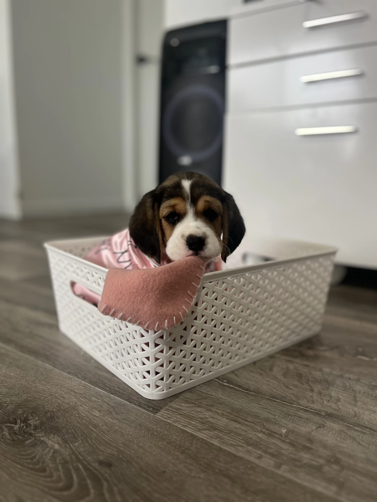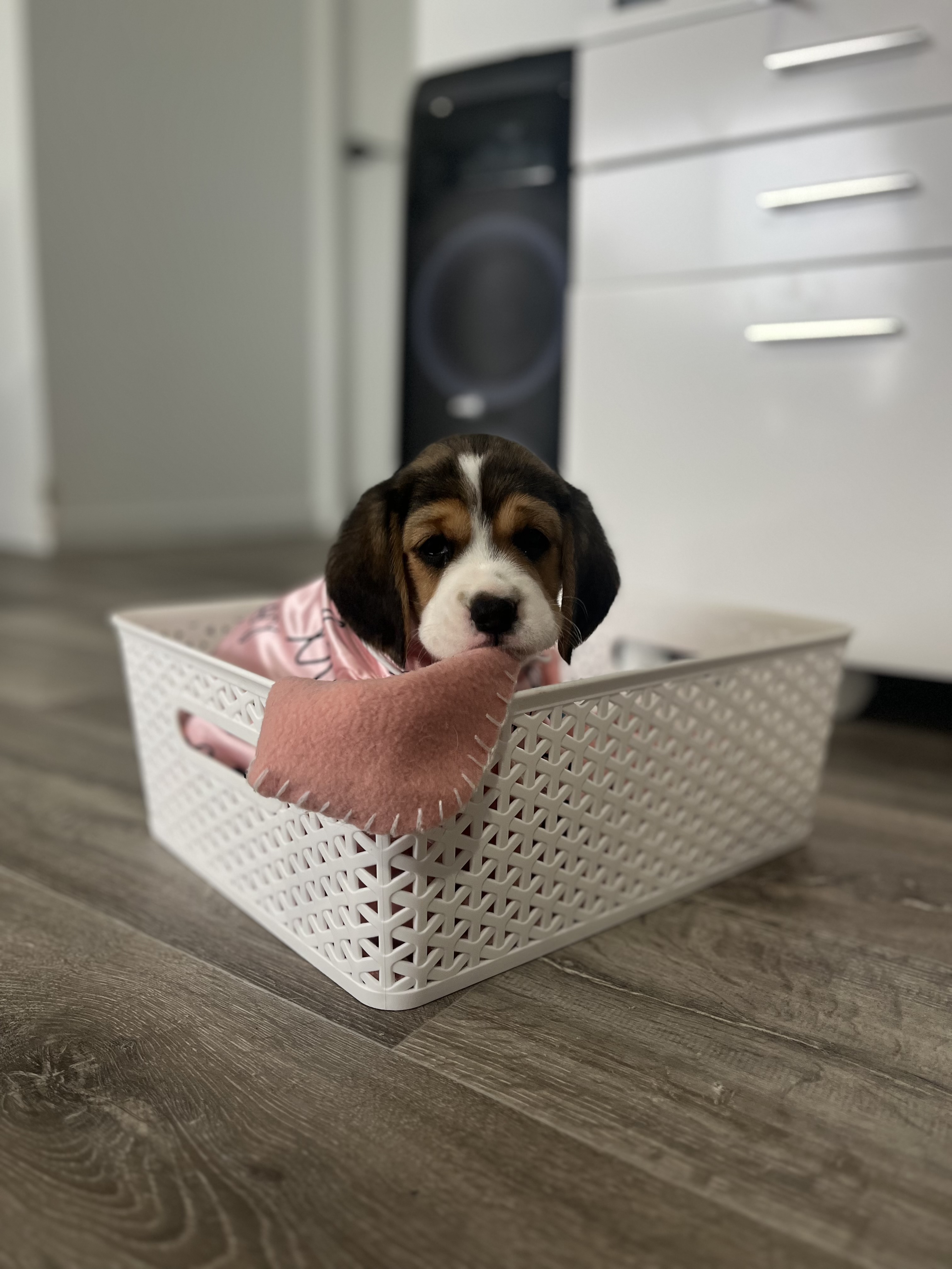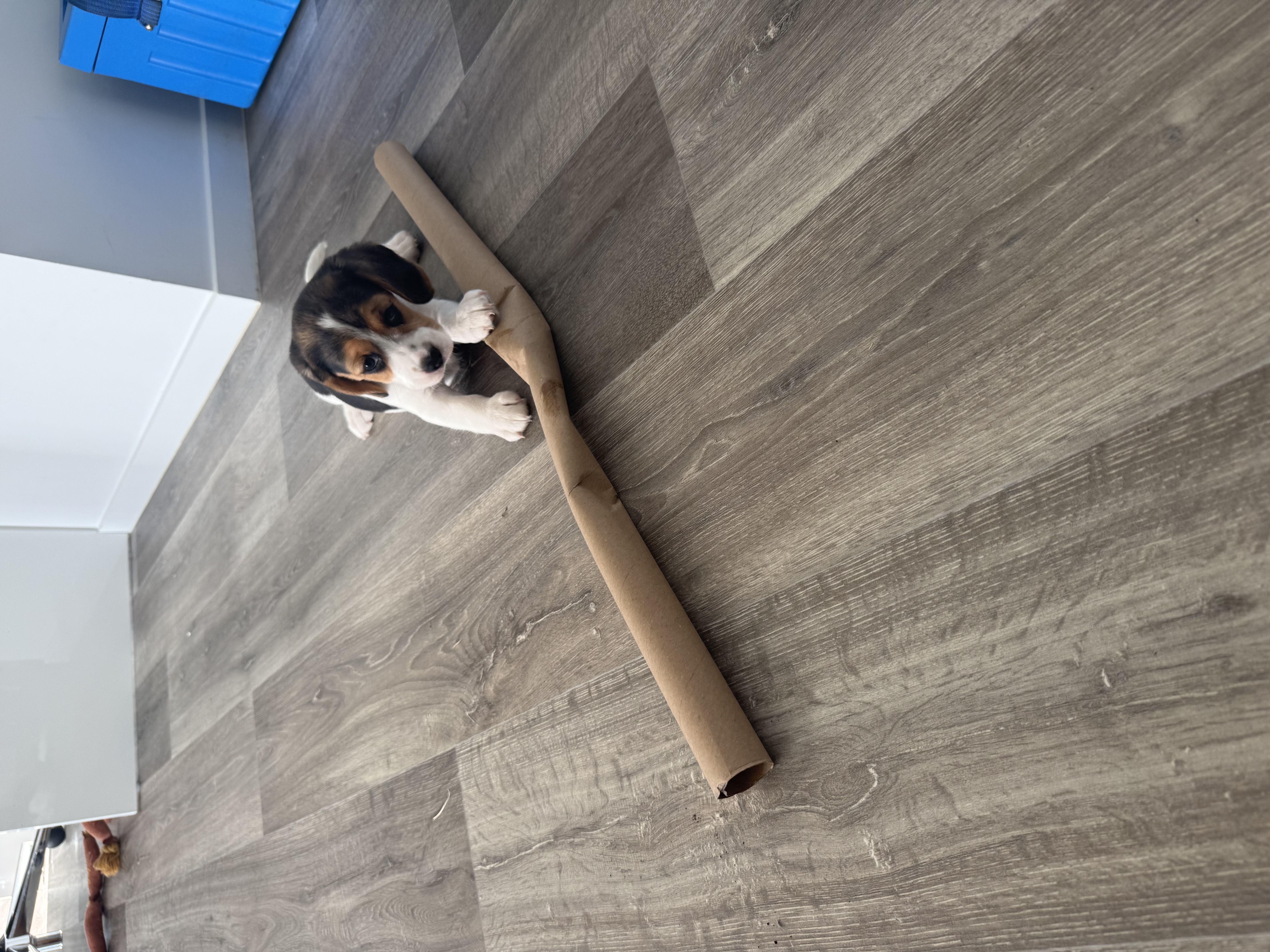 One boy and one girl Beaglier looking for their forever home. Puppies were born on 29 January and are available for adoption now. They have had their 8-week vaccination, microchipping and regular worming. Both pups have been raised in a warm family setting where they’ve grown used to everyday noise, gentle handling, and lots of cuddles. They enjoy playtime, exploring the yard, and curling up for naps together. These Beagliers will suit a loving household ready to guide them through their next stages. Enquiries welcome from committed homes ready to meet them and give them a great start.