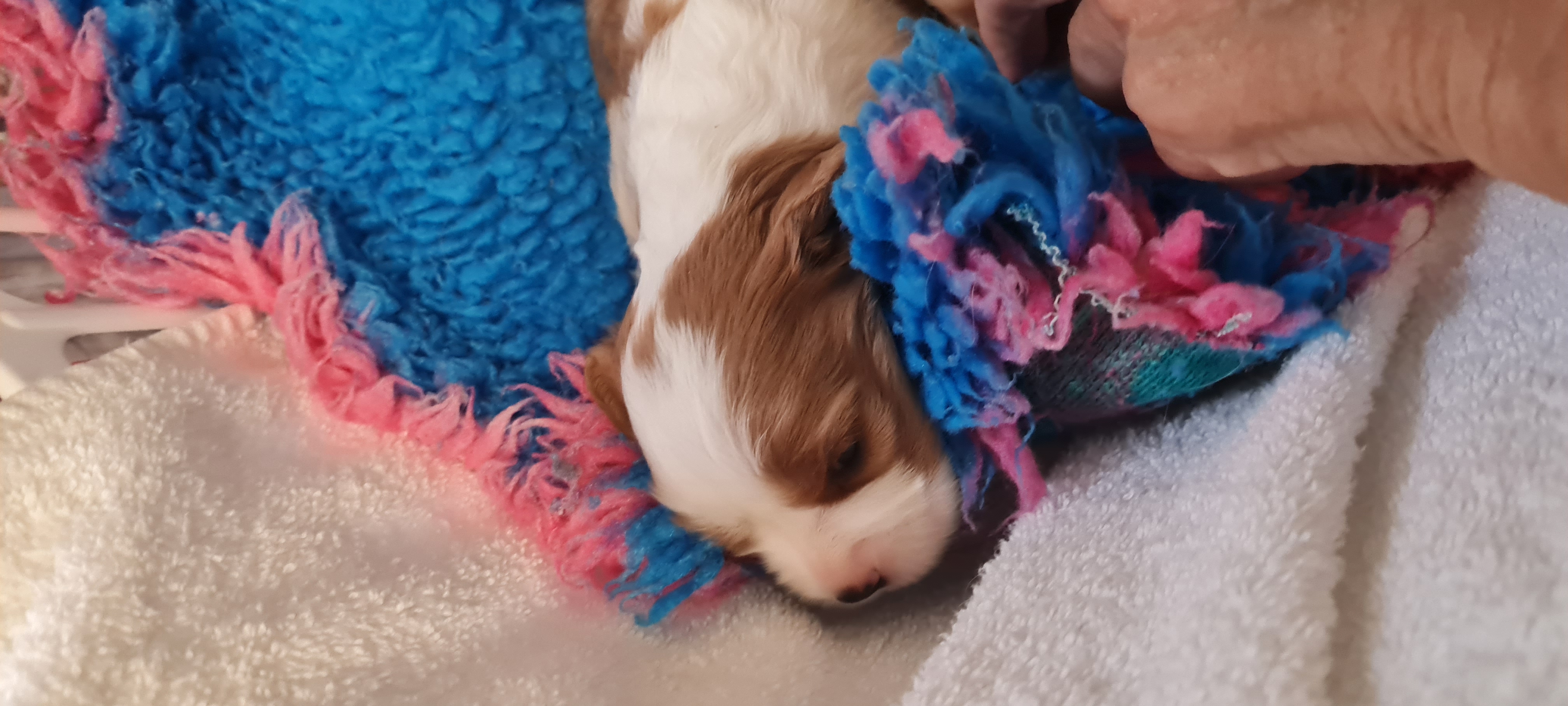 Birthed in my bedroom on my bed as mum, Lily is very comfortable and pups are in my room with Mum in their'puppy pod'.