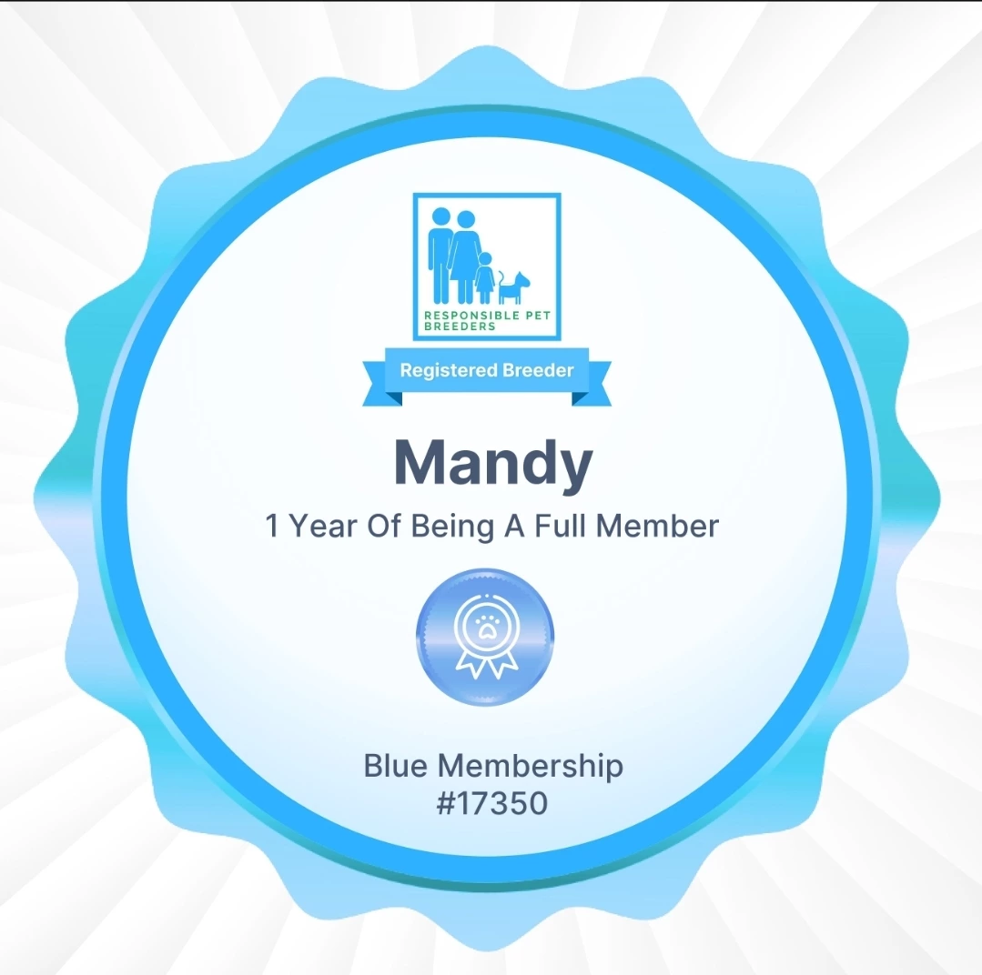 My grandpups are handled and weighed from birth. Exposed to a healthy variety of stimuli, including toys, textures, noises, puppy games, cats/ birds, children and toddlers and family.