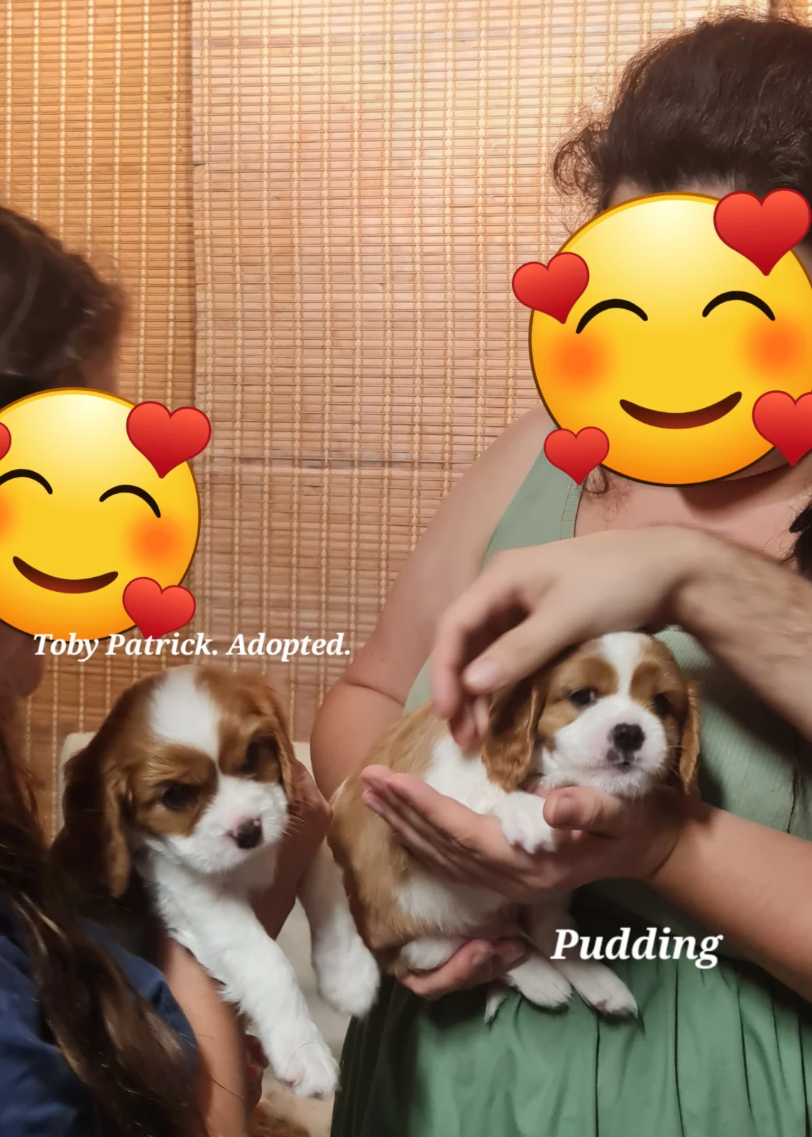 Boys-$2500 Dumpling, Toby Patrick ADOPTED, new pup parent waiting patiently, Cookie, Pudding.