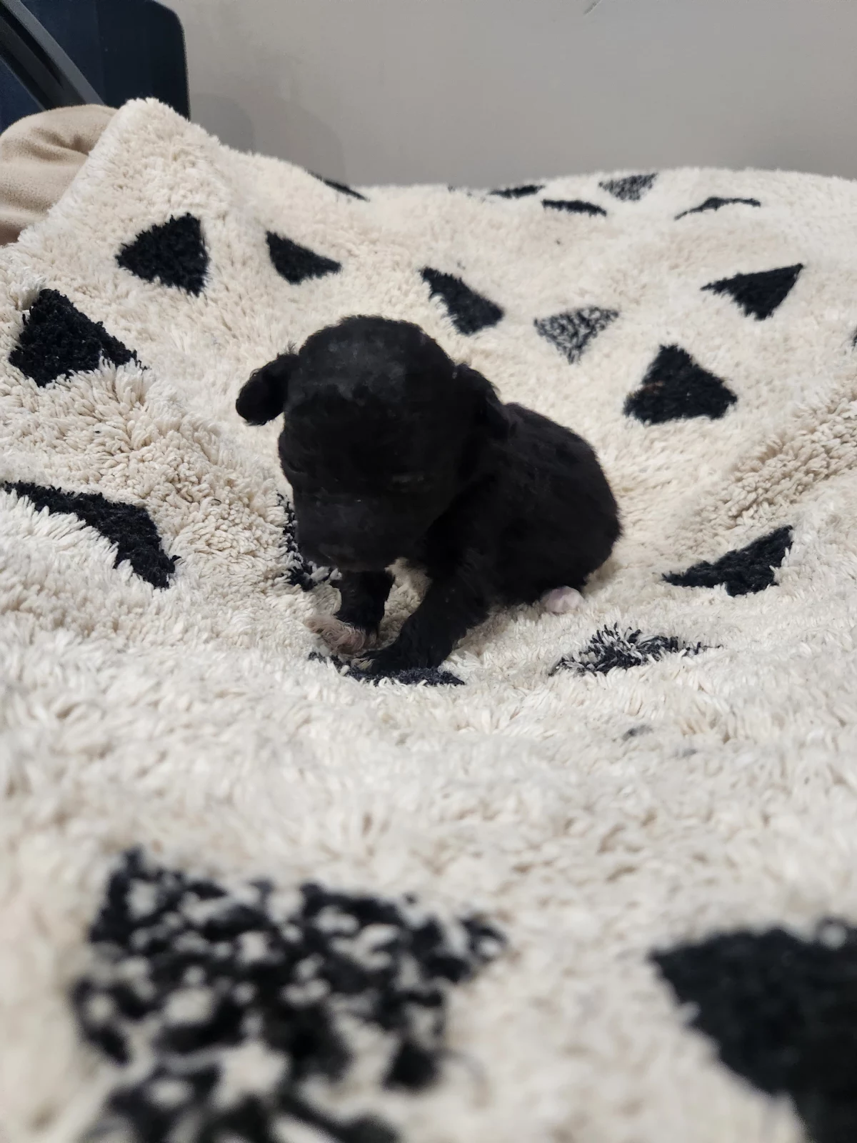 Dad is a black toy poodle, his mum was black and his dad was dark red toy poodle.