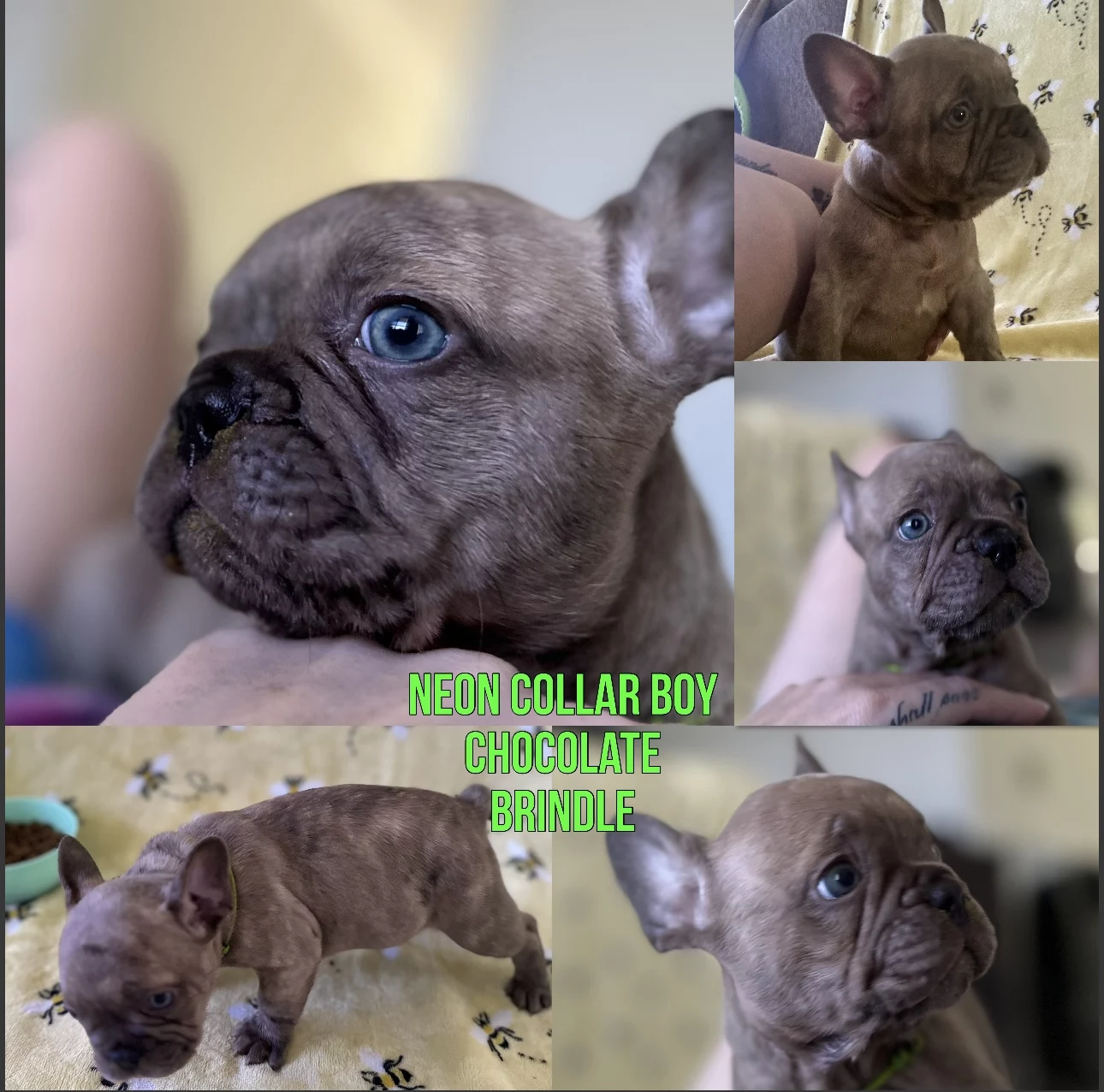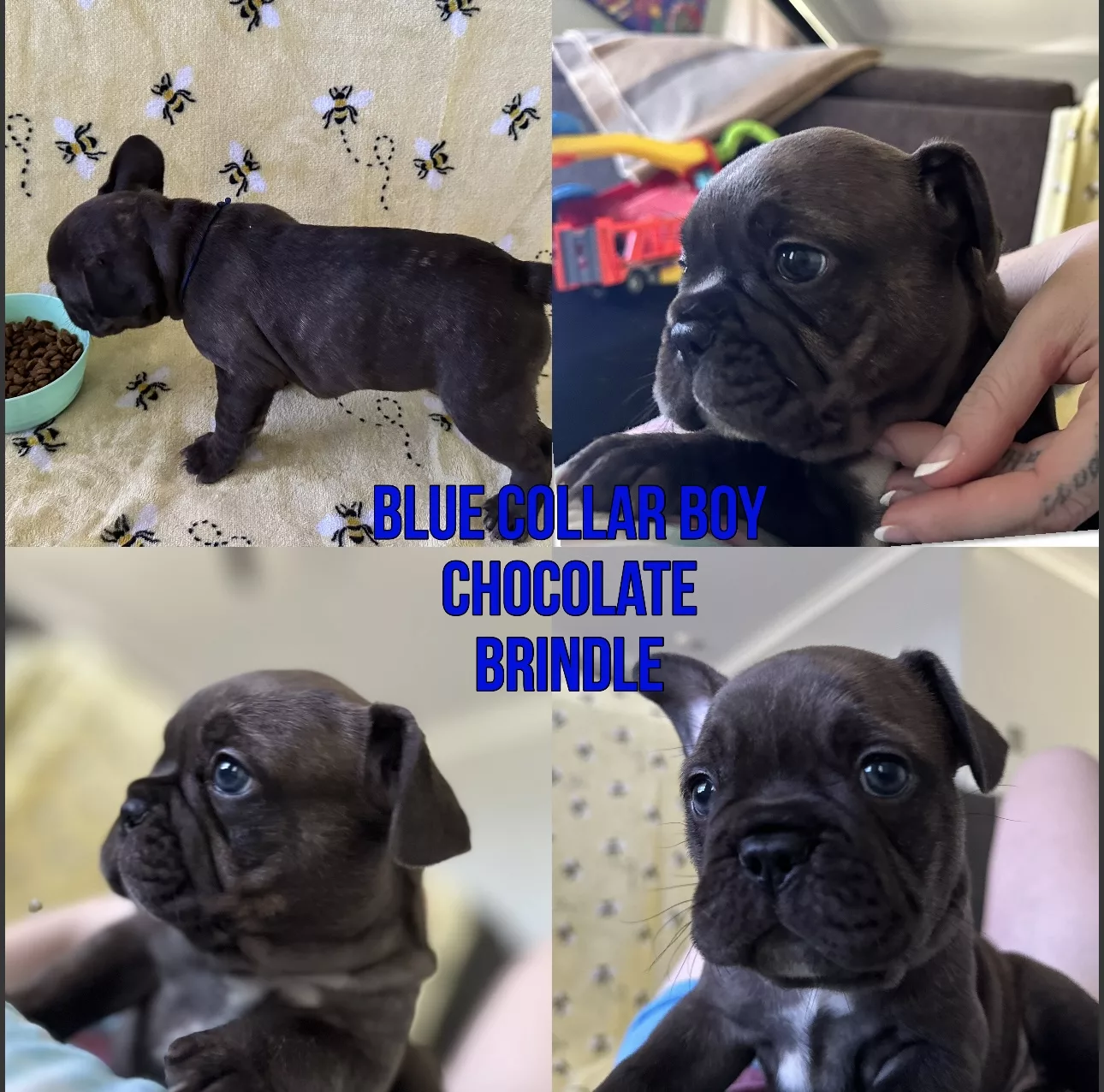 💙 boy (blue collar) chocolate with white chest (possible light brindle markings)
