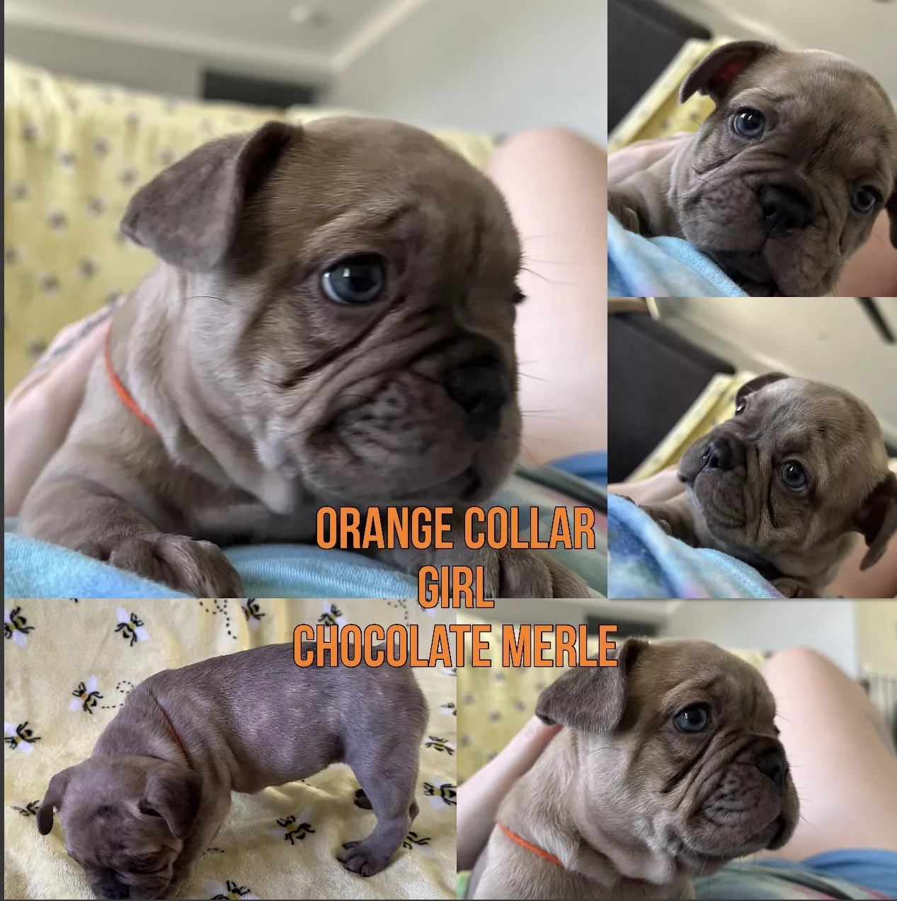 We have three beautiful purebred French bulldog puppies, two female pups and one male, Born 7/10/2022….They will be available from 9th December 2022. Raised in a home with child and other dogs, very social….dad is a blue and mum is a chocolate Merle. Clear dna by parentage.