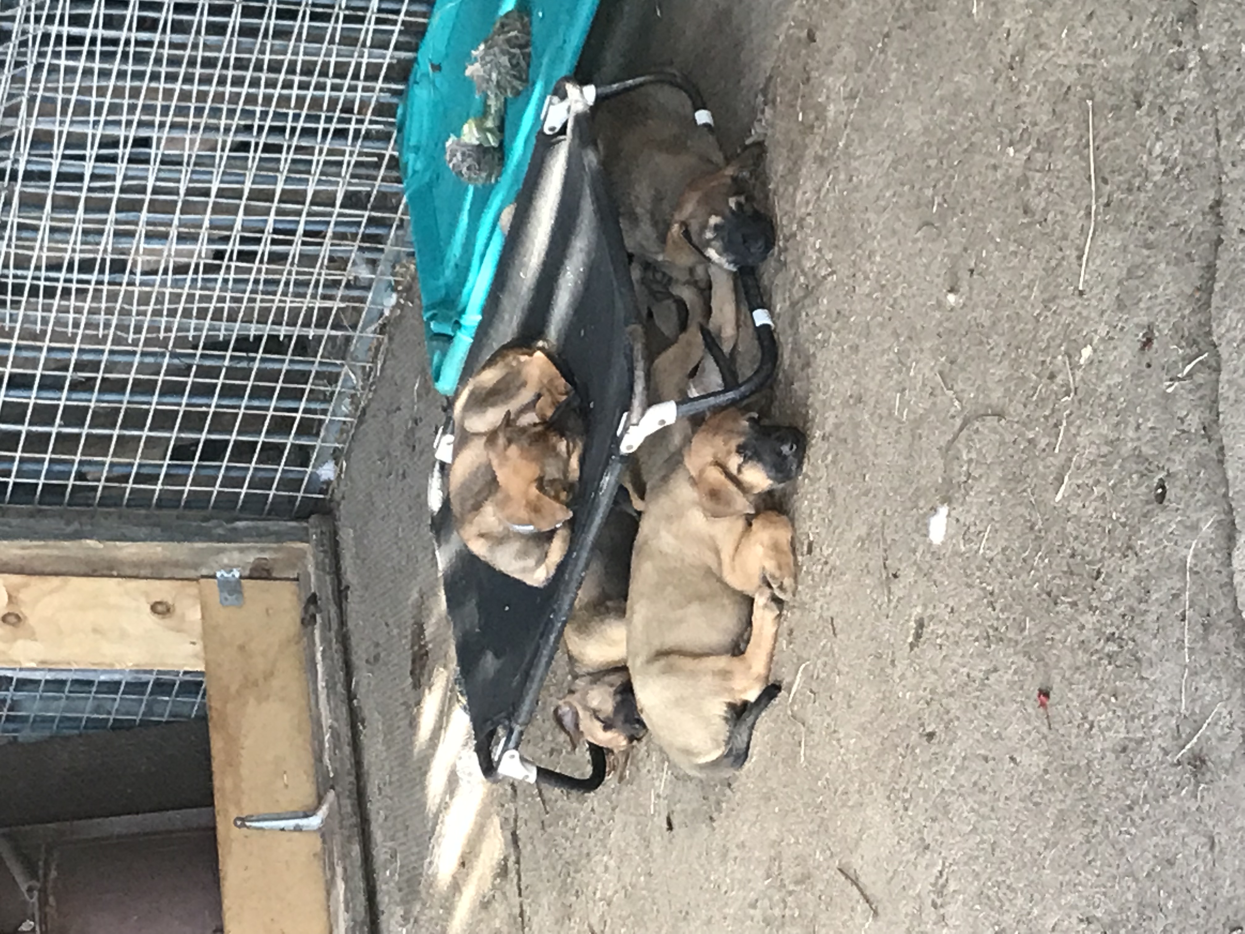 Dogs have access to: warm bedding, water at all times, ample space to exercise, natural light