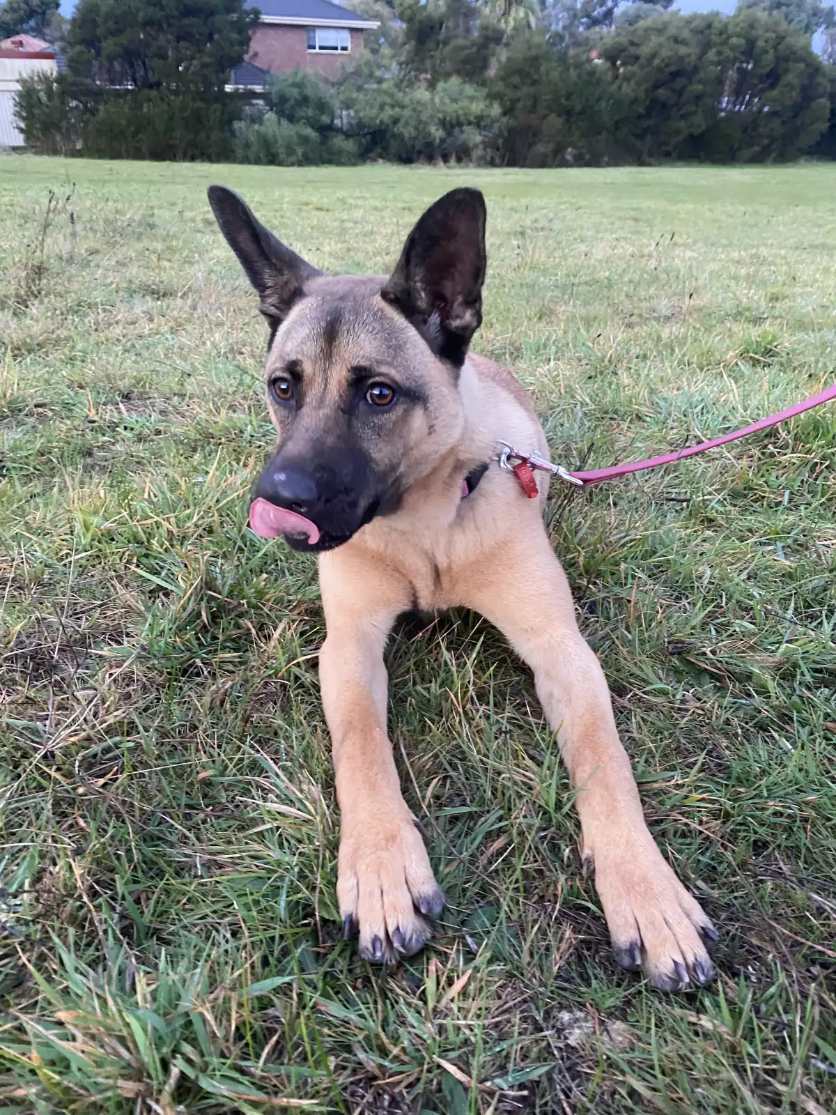We adopted Pocket a few months ago, we instantly fell in love with her. She's a lot of fun, loves a good tummy rub and is loyal to her owners, very protective. We have taught her stay, lay down, leave it and she is crate trained. Unfortunately she's not fitting well with our young kids because the kids’ high energy levels over-excite her and she starts to act out. If you have kids we think teenage-age would be a much better suit for her. Pocket needs someone dedicated and patient. A calm handler, preferably experienced with high-energy dogs and a calm neighbourhood or a rural property would make her really happy. She loves running around and is very trainable but only when there aren't distractions. She requires socialising with dogs but once comfortable she will have fun.