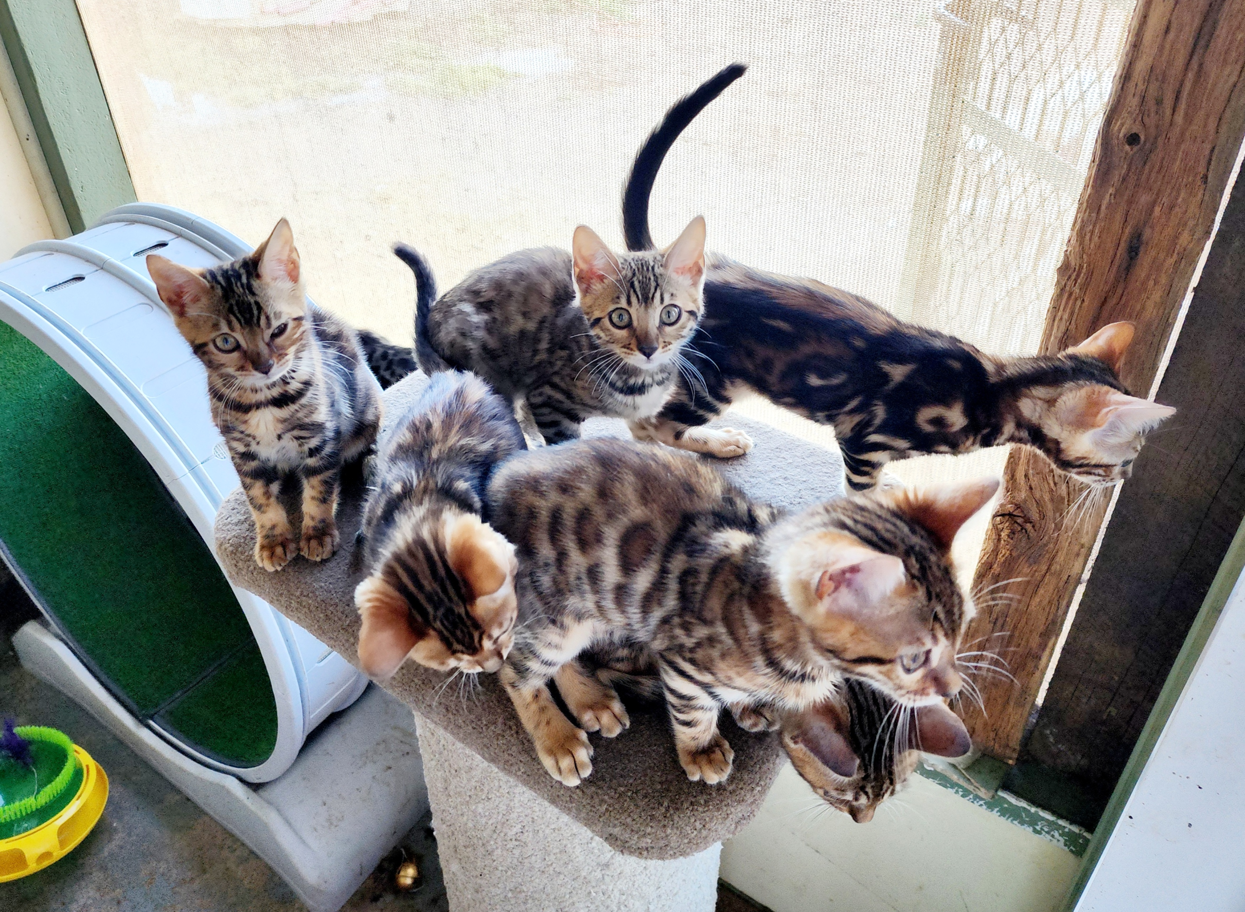 We have brown spotted and marbled Bengal kittens available. We have males and females. Raised in our home with our children, our cats, and our dogs, these kittens are well socialised, confident, and affectionate. They are playful, intelligent, and full of personality, making them wonderful companions for active households.