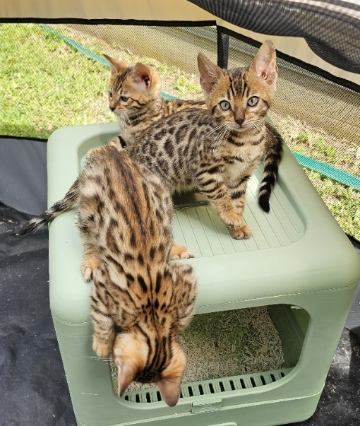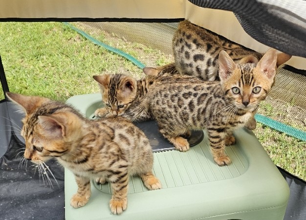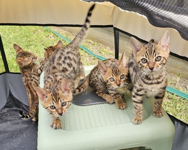 4 kittens left from a litter of 5, with 2 males and 2 females still available. They are already microchipped and have completed their health checks, with the vet commenting on how strong and healthy they are. Each kitten has excellent markings and friendly temperaments, and they have been wonderful with children during their time with us. They will be ready to join their new families before Christmas, making them a perfect gift for anyone hoping to welcome a new companion. Mum and Dad are shown in the last two photos and can be viewed. Kittens will be immunised and desexed before leaving.