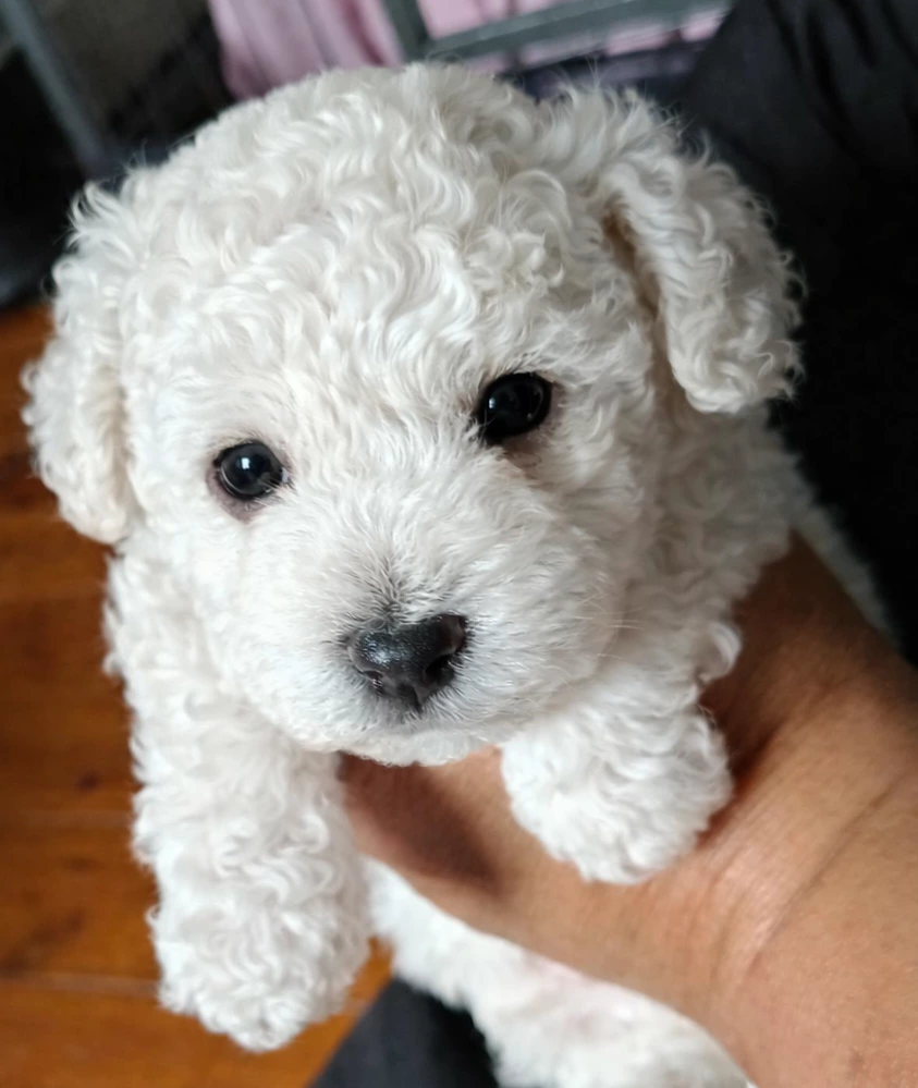 Beautiful little Bichon Frise boy, born on 13 January 2026 available. He is an exceptionally calm, gentle, and sweet-natured pup, already showing a loving and affectionate personality that makes him a joy to be around.