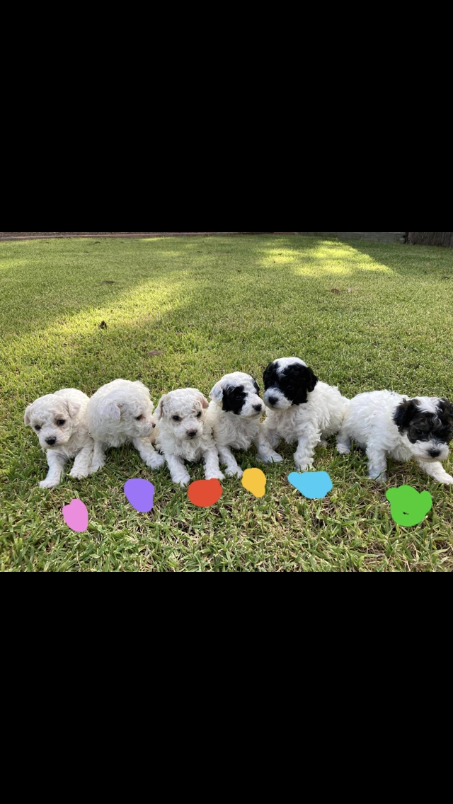 We have 6 beautiful little Poochons (Poodle x Bichon) available to approved homes. 4 boys 2 girls