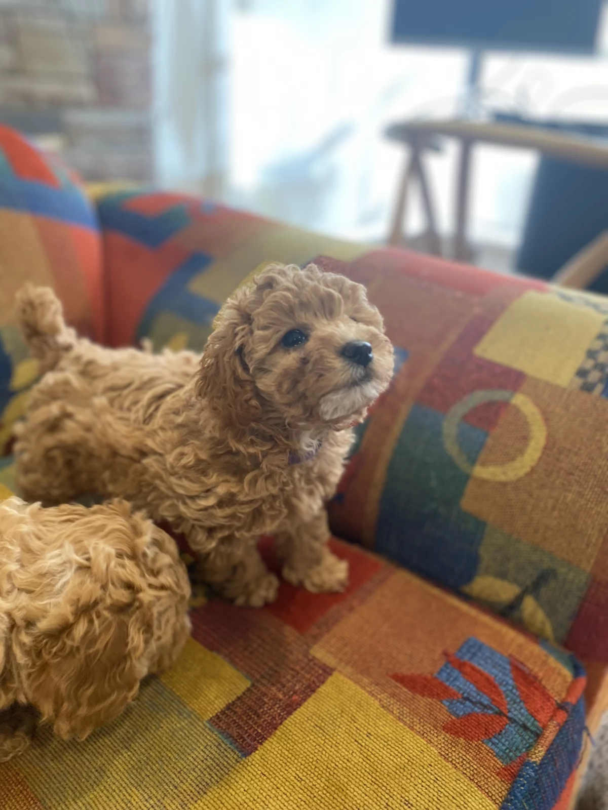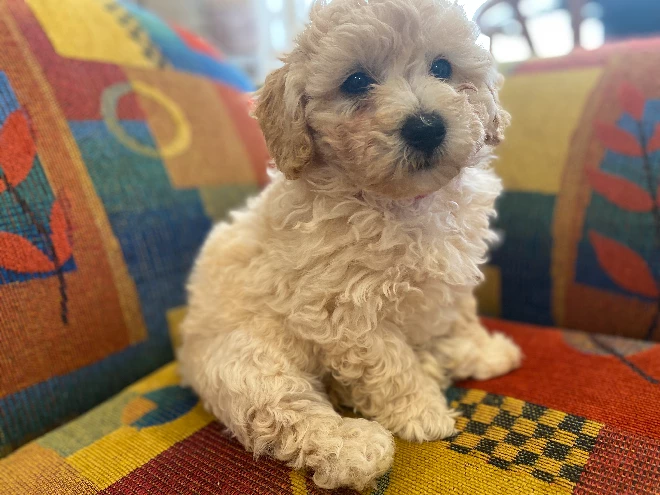 Toy Bichoodle / Poochon puppies available, expected adult size will be around 5 kg to 8 kg. These puppies suit families seeking a small, affectionate companion. They are known for their gentle nature, they enjoy close contact, and settle well indoors.