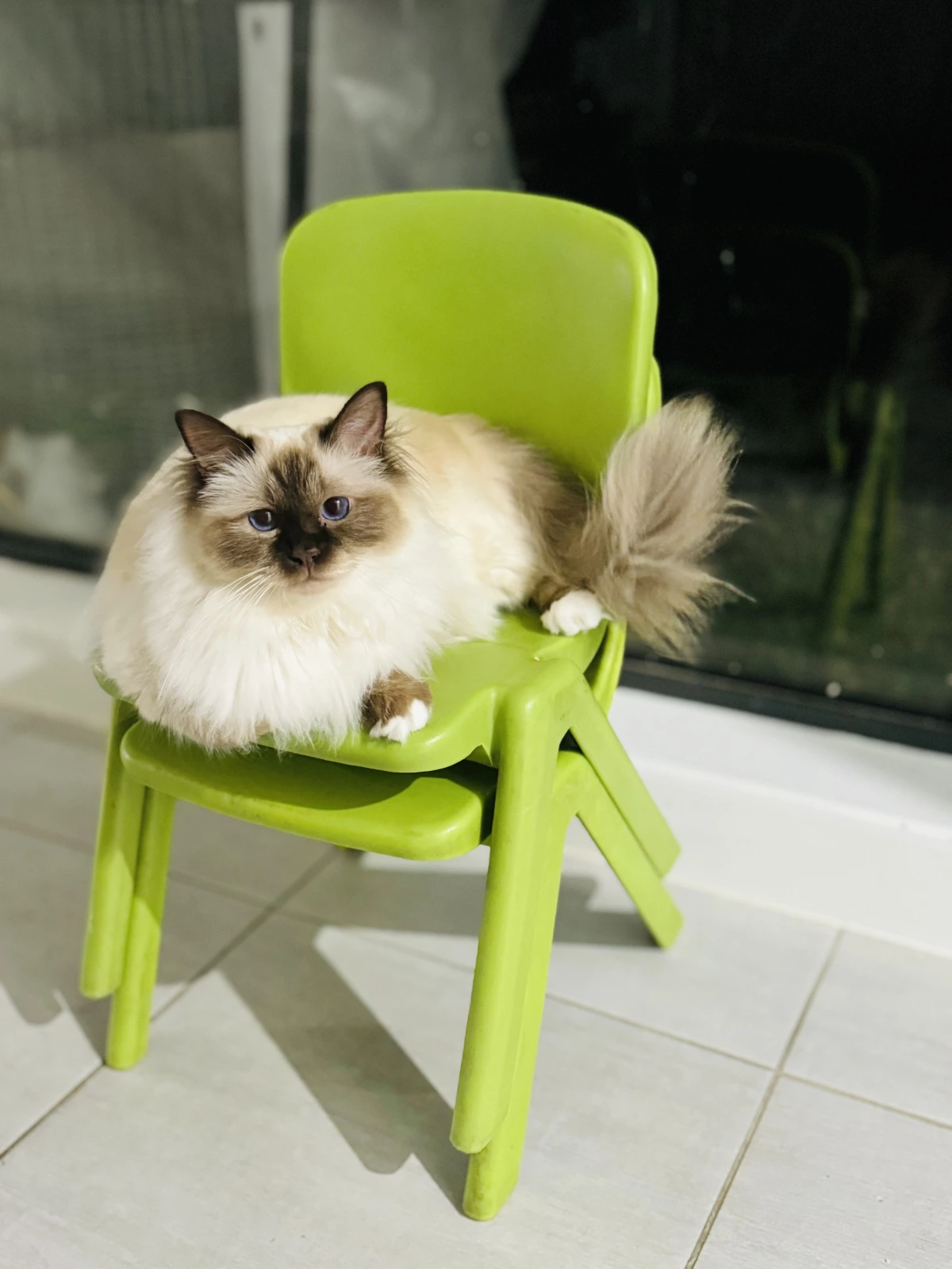 My Coco is a 1 and half-year-old female Birman. She's a Chocolate Point with a friendly demeanor, adores staying close to her human, and has a good temperament.