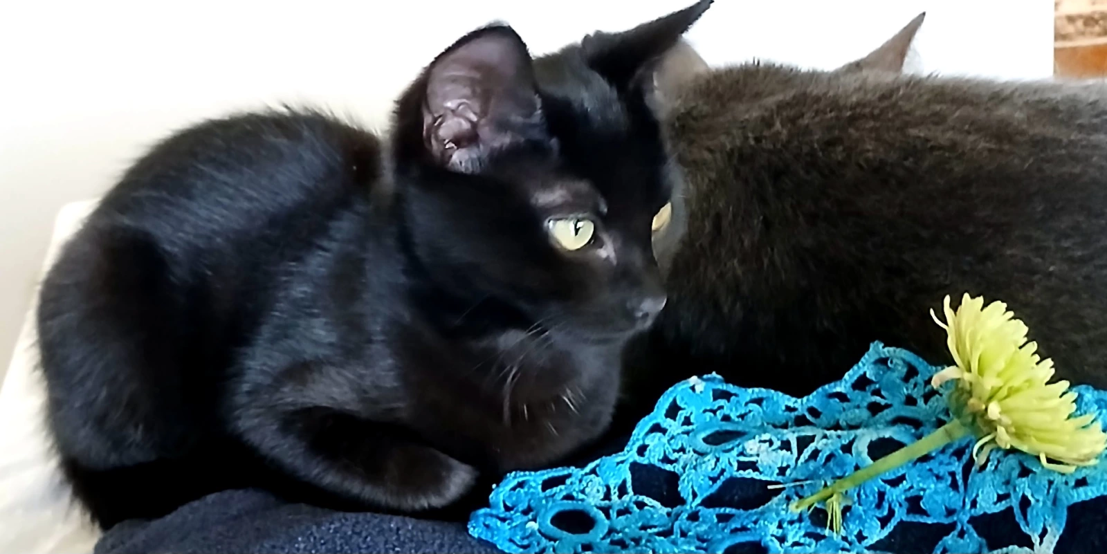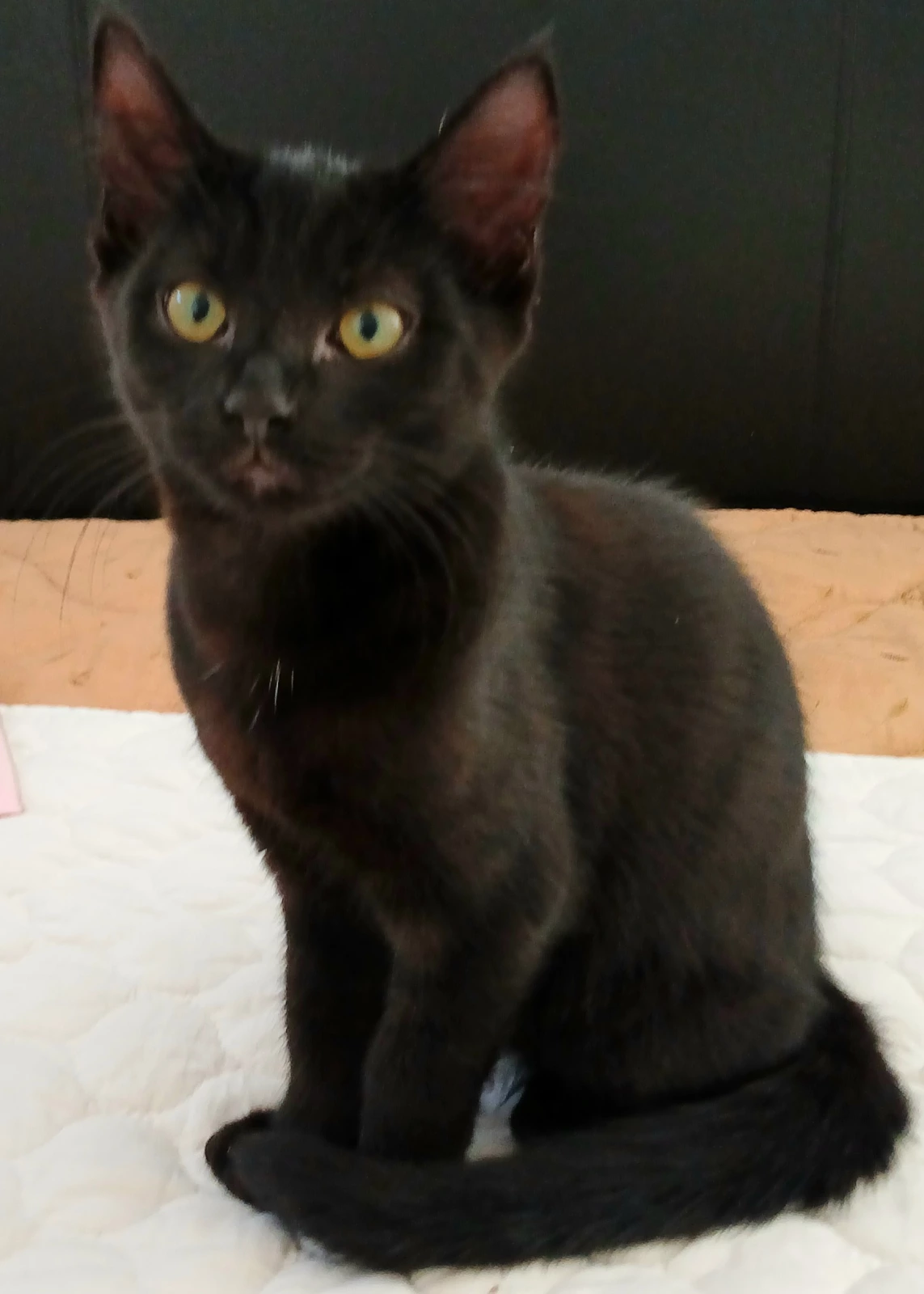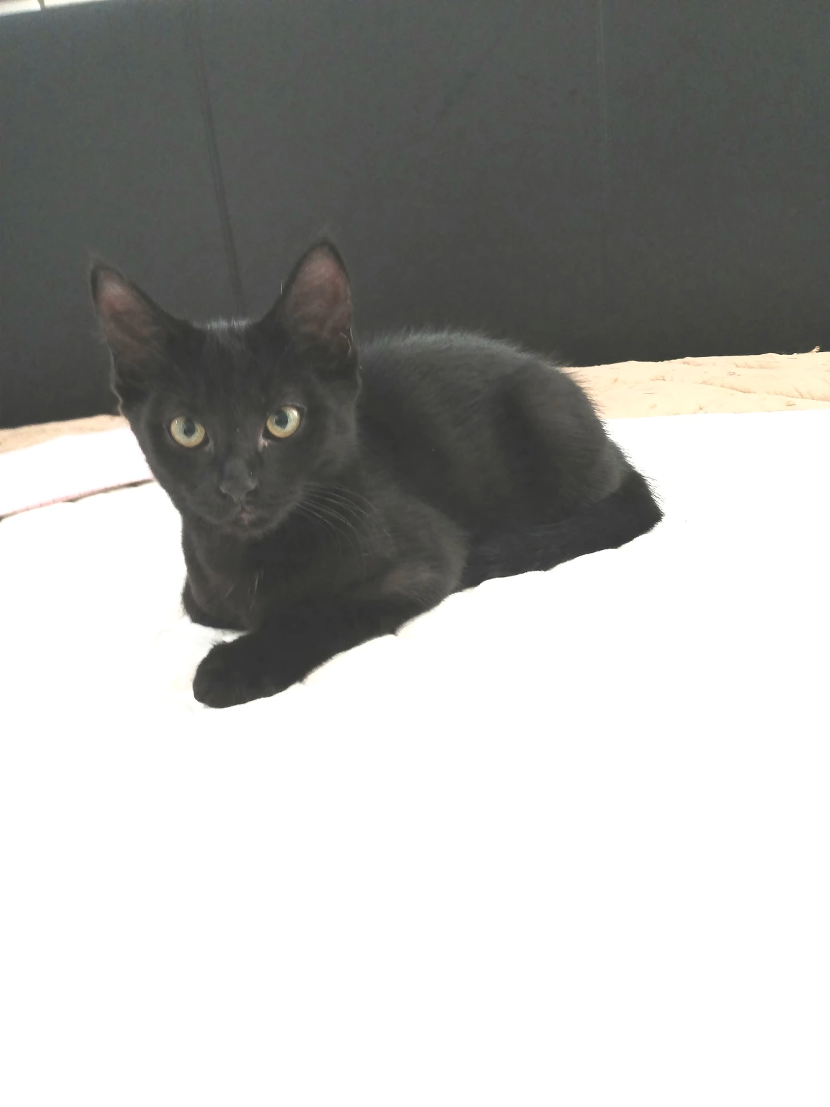 she has the most gorgeous coloured eyes and that shiny black coat it feels just like velvet . To top it off she is just sweetest most affectionate little kitty you could ever dream of and loves nothing more than to snuggle up on your lap or right next to you on the lounge .she has been treated as part of our family and has had total access to our entire house.