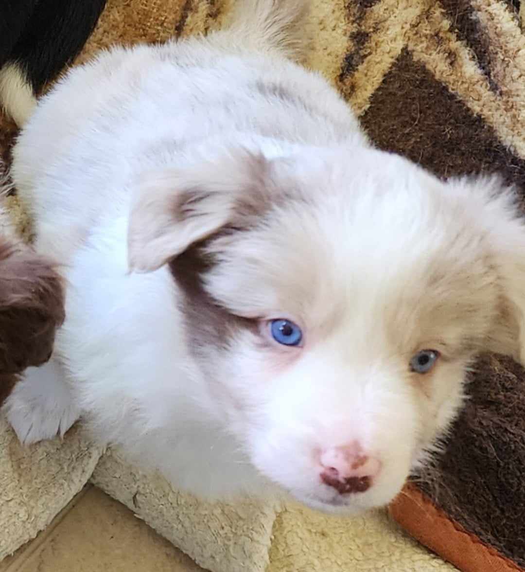 Their loving, affectionate & very active mum Holly is EERed/white & their handsome big cuddly goofball, blue eyed dad Dusty is Blue Merle, both are DNA tested and are Master Dog Breeders Associate (MDBA) registered, Member no. 24362.