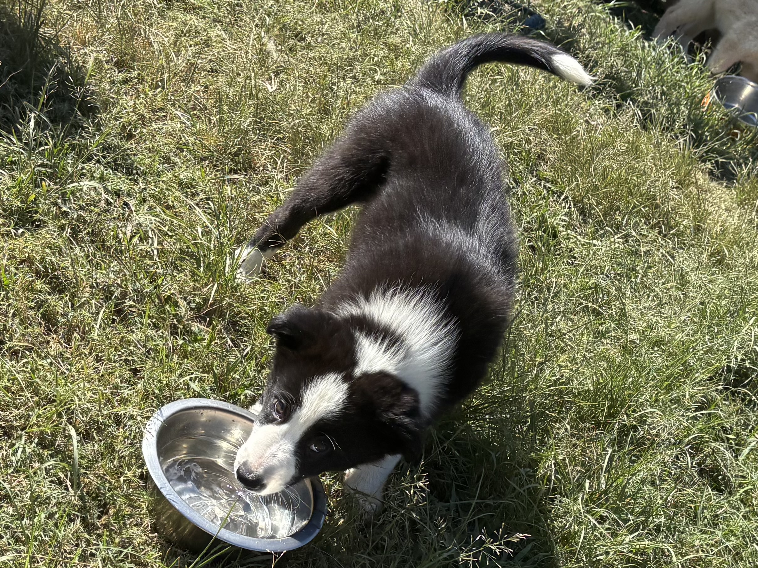 Dogs have access to: warm bedding, water at all times, ample space to exercise, natural light
