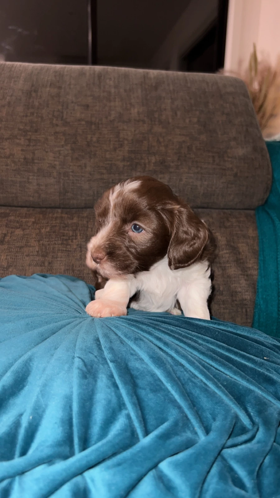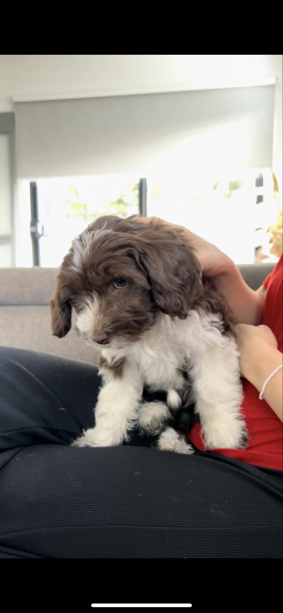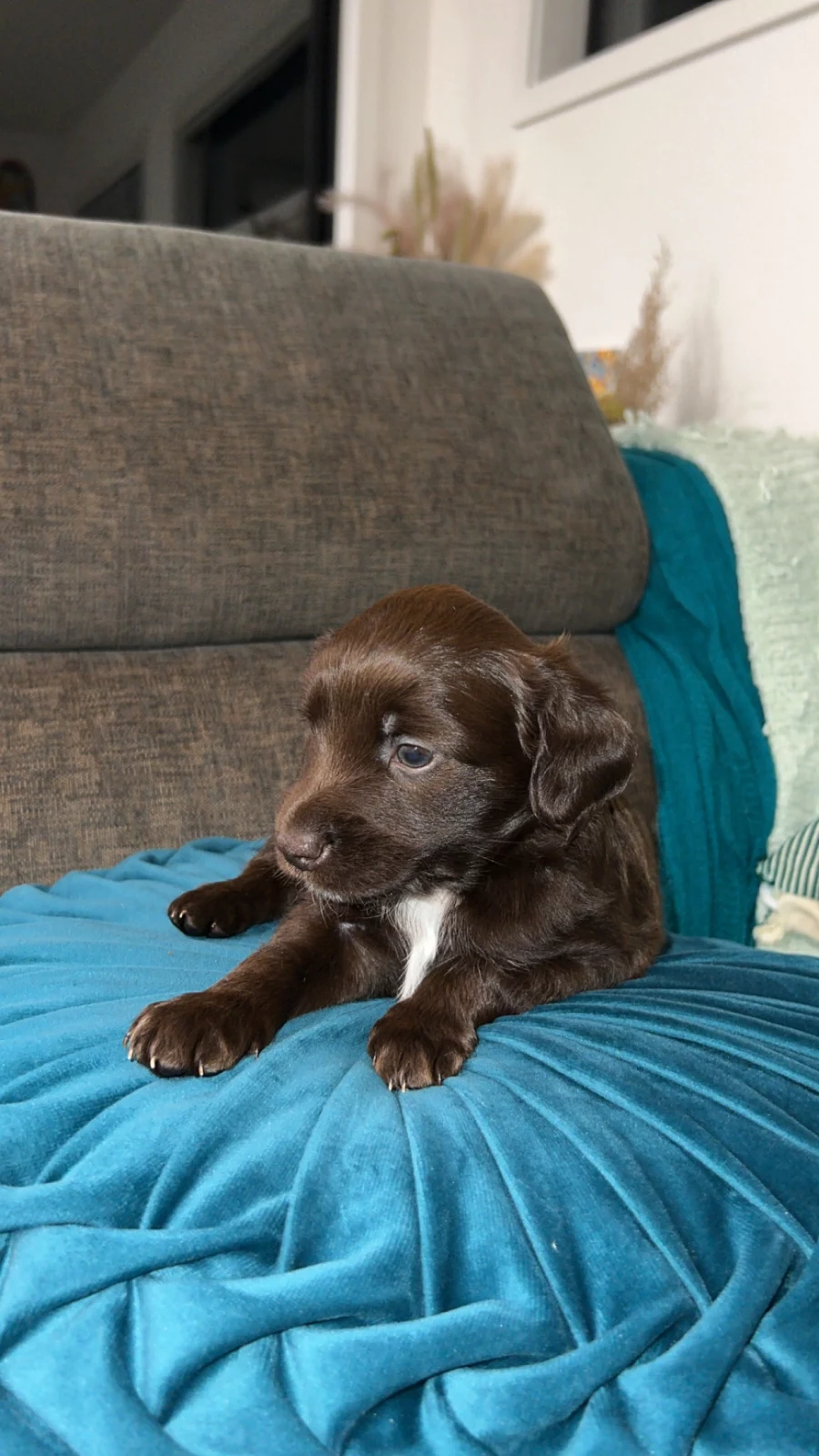 Our beautiful F1 Chocolate boordoodle had a litter of puppies on the 14/5/24 and they are ready to go to their forever homes now. The sire is a chocolate brown F1b Boordoodle, making the litter low shedding.