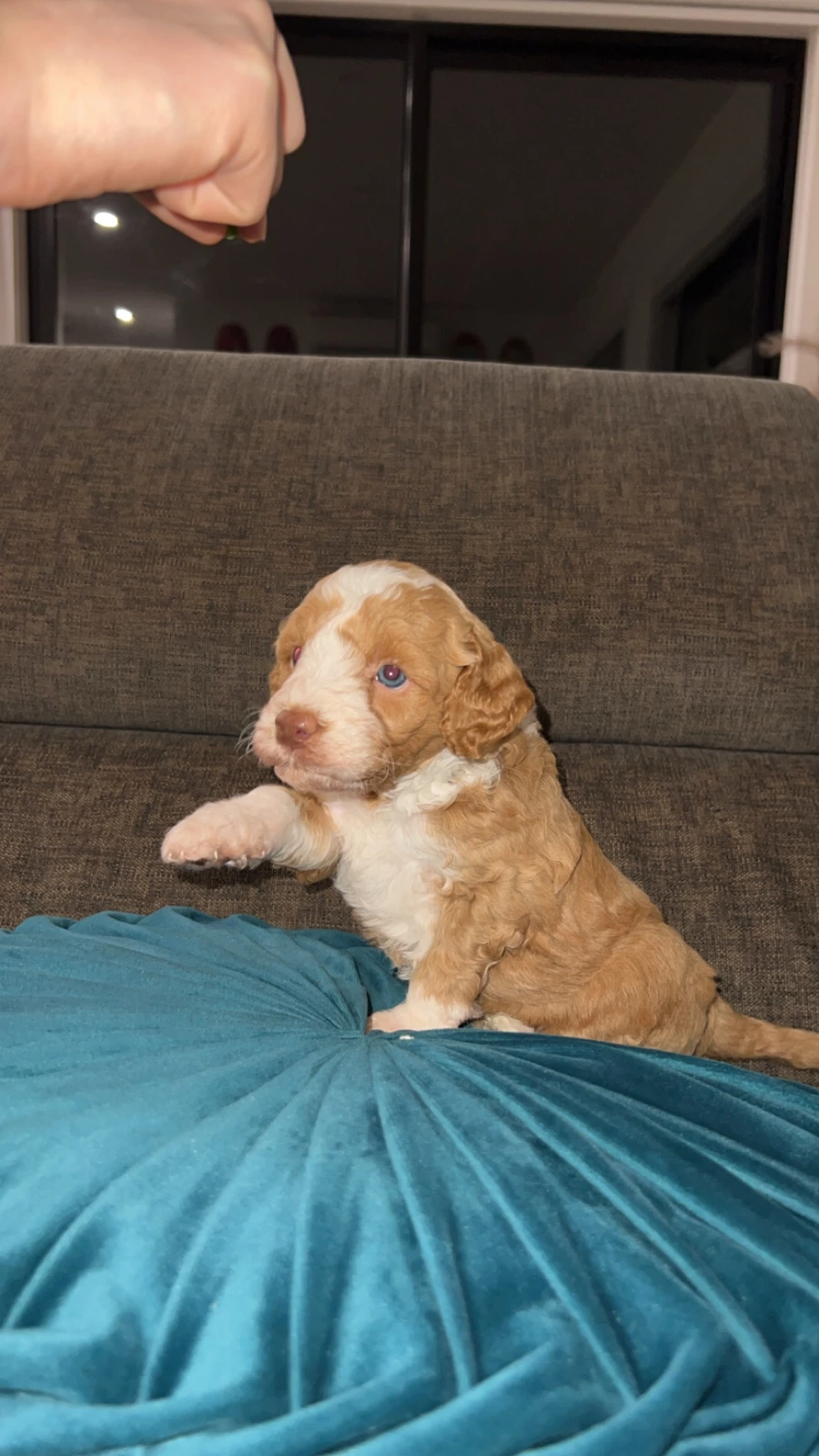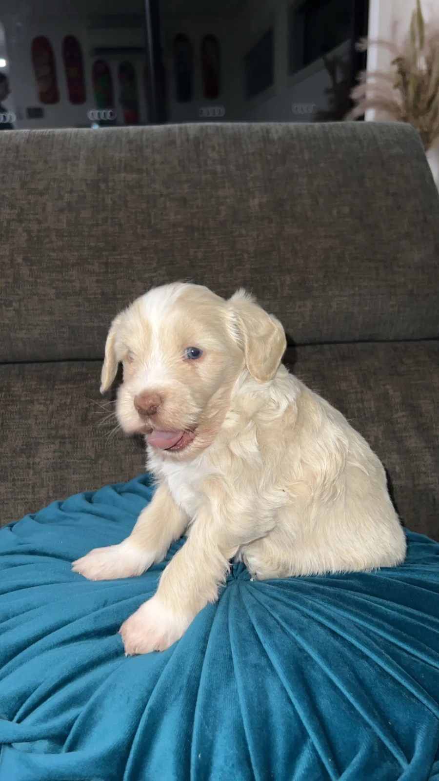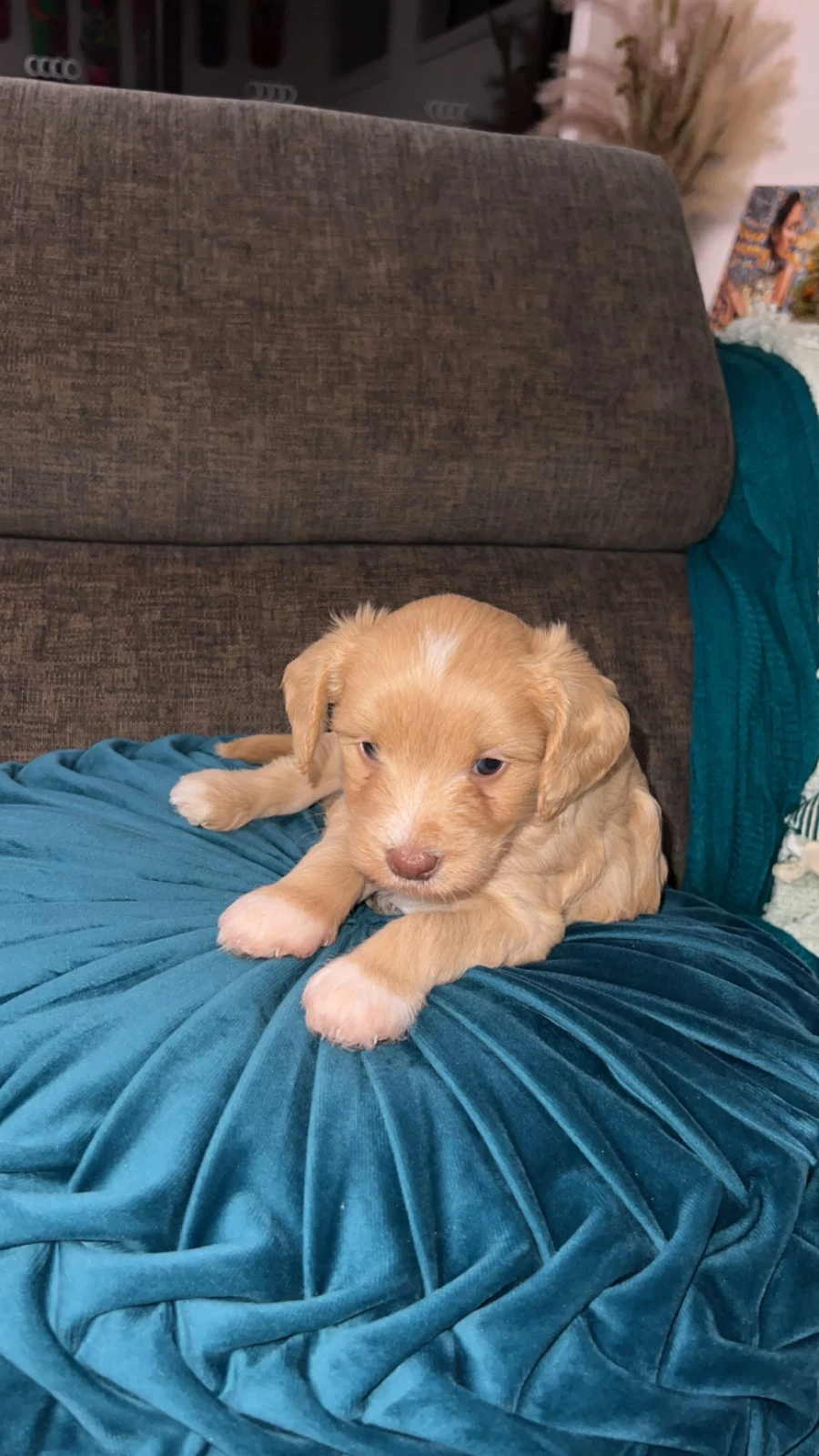 The litter is comprised of two girls and four boys. The colours range from cream, gold, and chocolate brown with various white markings. If you are ready to add a furry friend to your family, please contact me! We can organise transport at the buyer's expense. The puppies will come with their first vaccinations, microchips, and a puppy pack to help them settle into their new families.