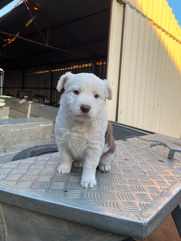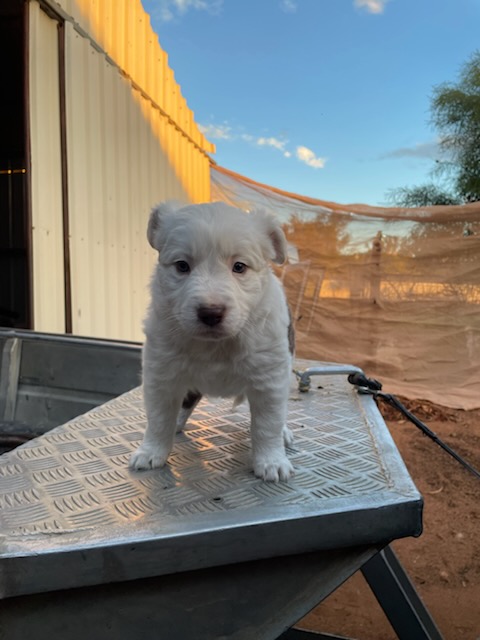 Wormed every 2 weeks and bathed every 2 weeks as well. They are well socialised with children, chickens, other dogs, cats, and sheep. Will be vet checked and microchipped, along with a puppy pack with some goodies in there. Raised in a busy family and farm setting, so they are used to everyday noise, people, and activity. They are playful, affectionate, and enjoy human company and gentle handling. Check out my Facebook page, Riverland Bundle of Joys, for updates and photos. Mum is white and black, and dad is lilac and white, both with beautiful natures and calm temperaments.