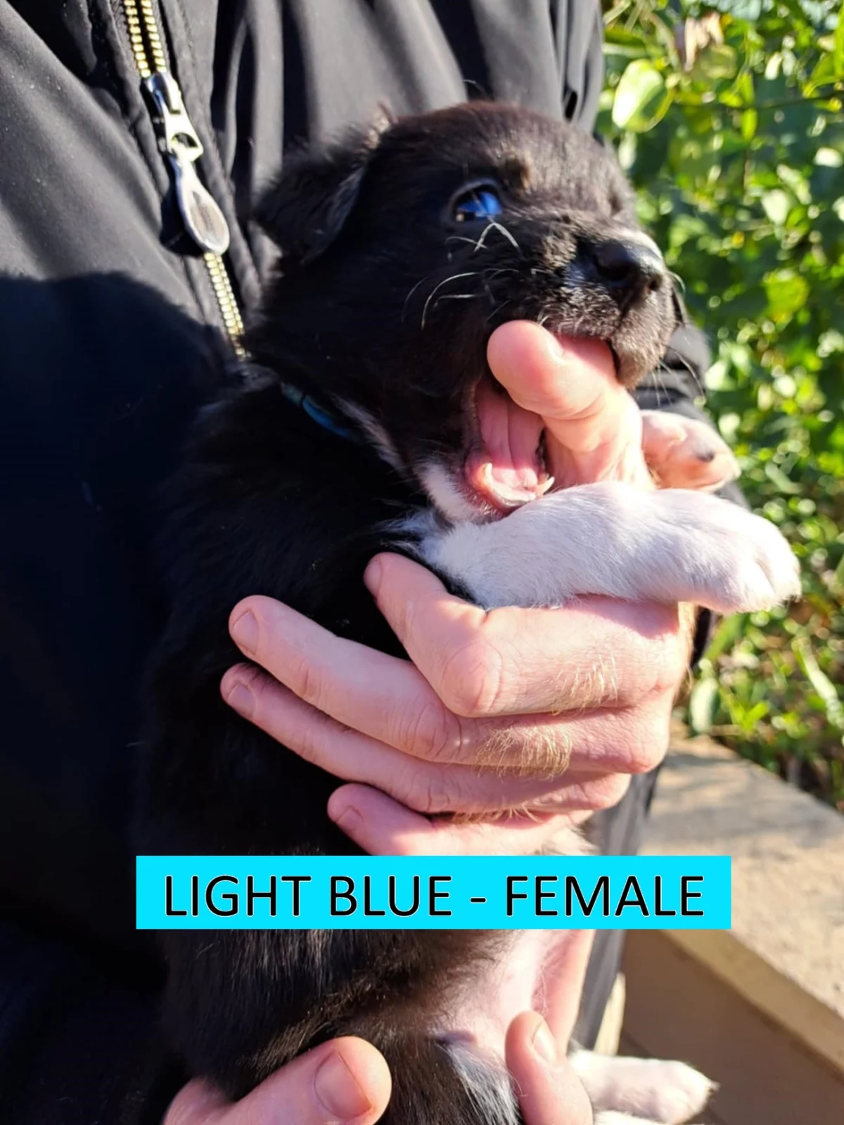 LIGHT BLUE: Black & White, Female. Curious, playful, independent, sweet, cuddly. ($1000)