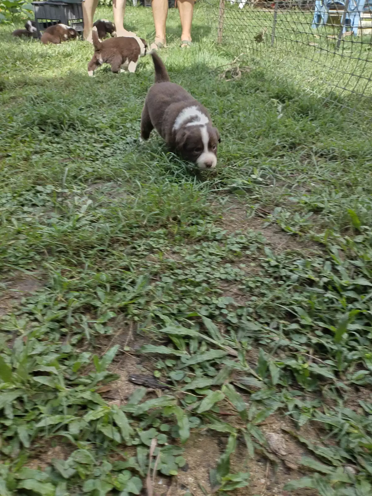 I have eight Border Collie puppies, seven females and one male. The puppies are brought up in a family environment and are very playful and smart. They are already showing recall at just four weeks old, which highlights how quick they are to learn. The puppies are confident and also love to be picked up for a cuddle. All puppies will be fully vaccinated, microchipped, and wormed regularly before going to their new homes. There are two puppies with perfect markings that are priced at $1,800. I am taking deposits now. The puppies were born on 22/04 and can be taken to their new homes when they are eight weeks old.