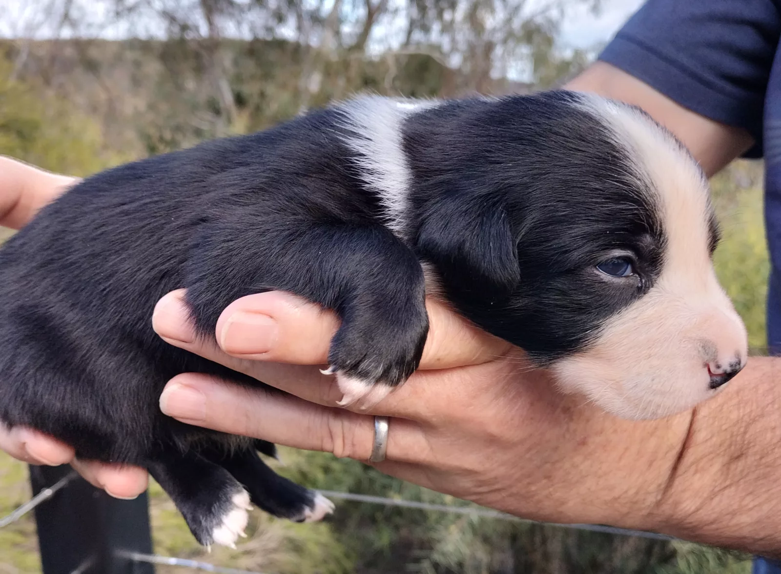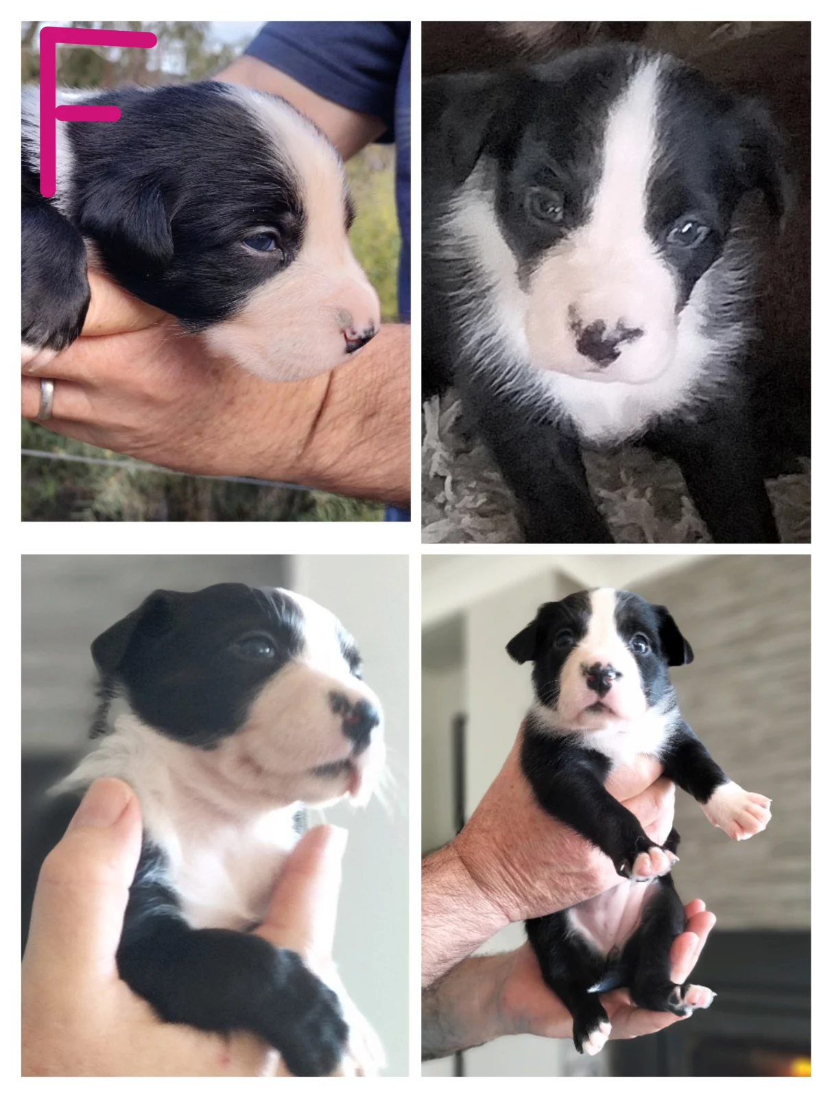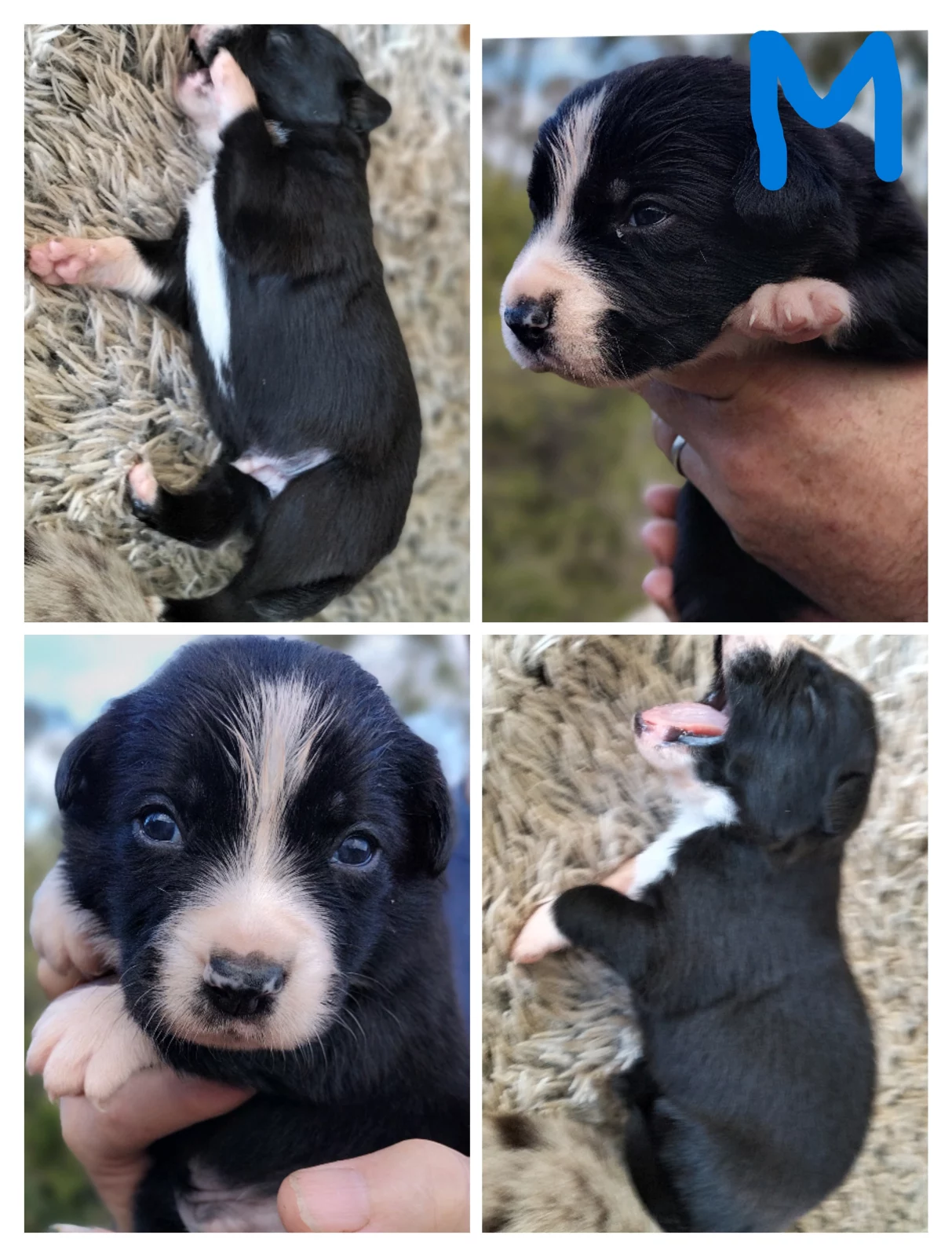 Border collie cross Koolie pups for sale. These cheeky, chilled chappies were born on the 1st of July and will be ready to go from the 25th August. Only 2 left out of a litter of 8. 1 Female and 1 Male, both black and white. The black and whites get their classic look from Dad who is a pure bred Border Collie and their chilled out temprement from Koolie mum who is a tri coloured merle.