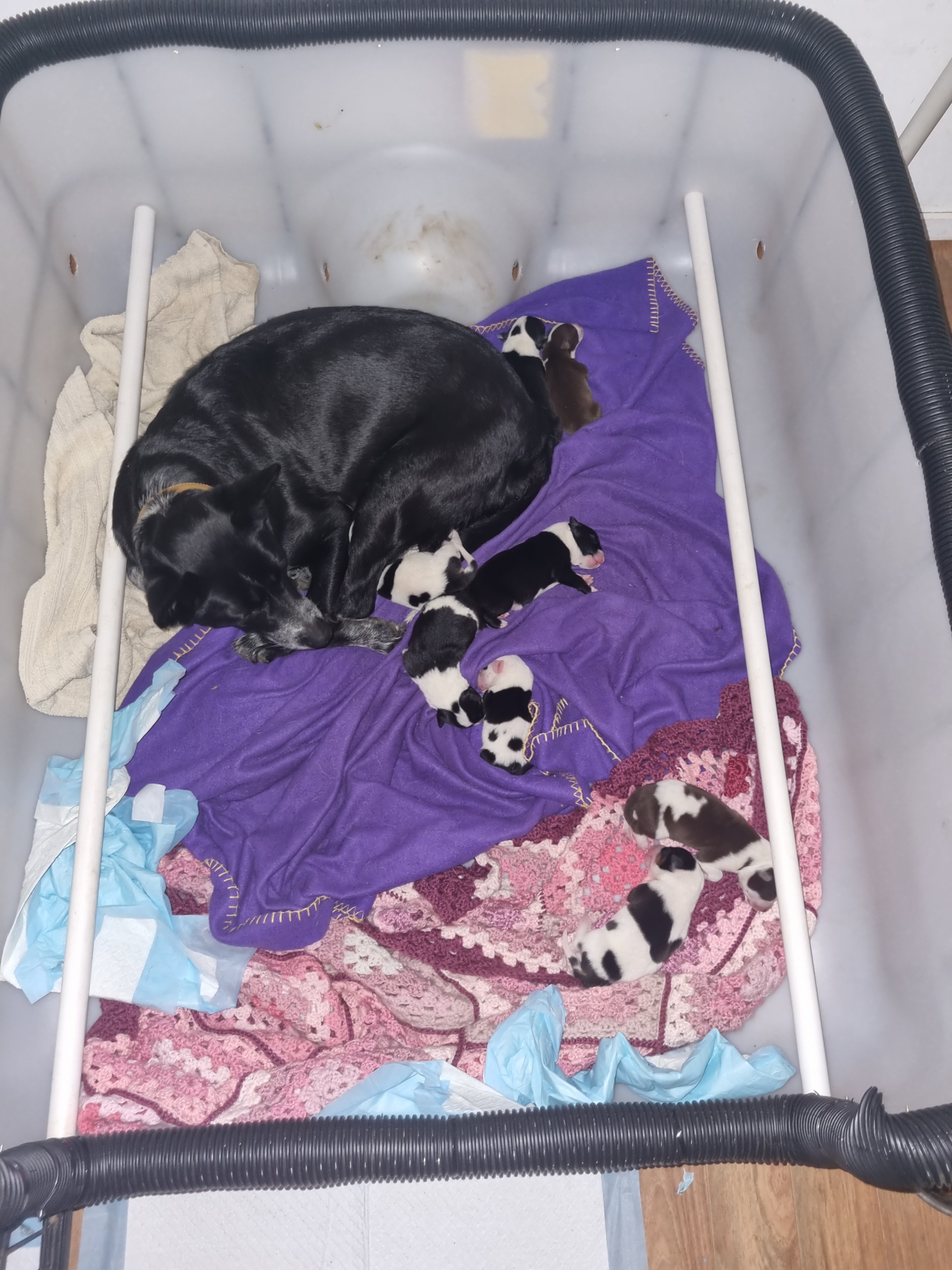 Dad (Alfie) pure-bred Border Collie, black and white. Friendly temperament.
