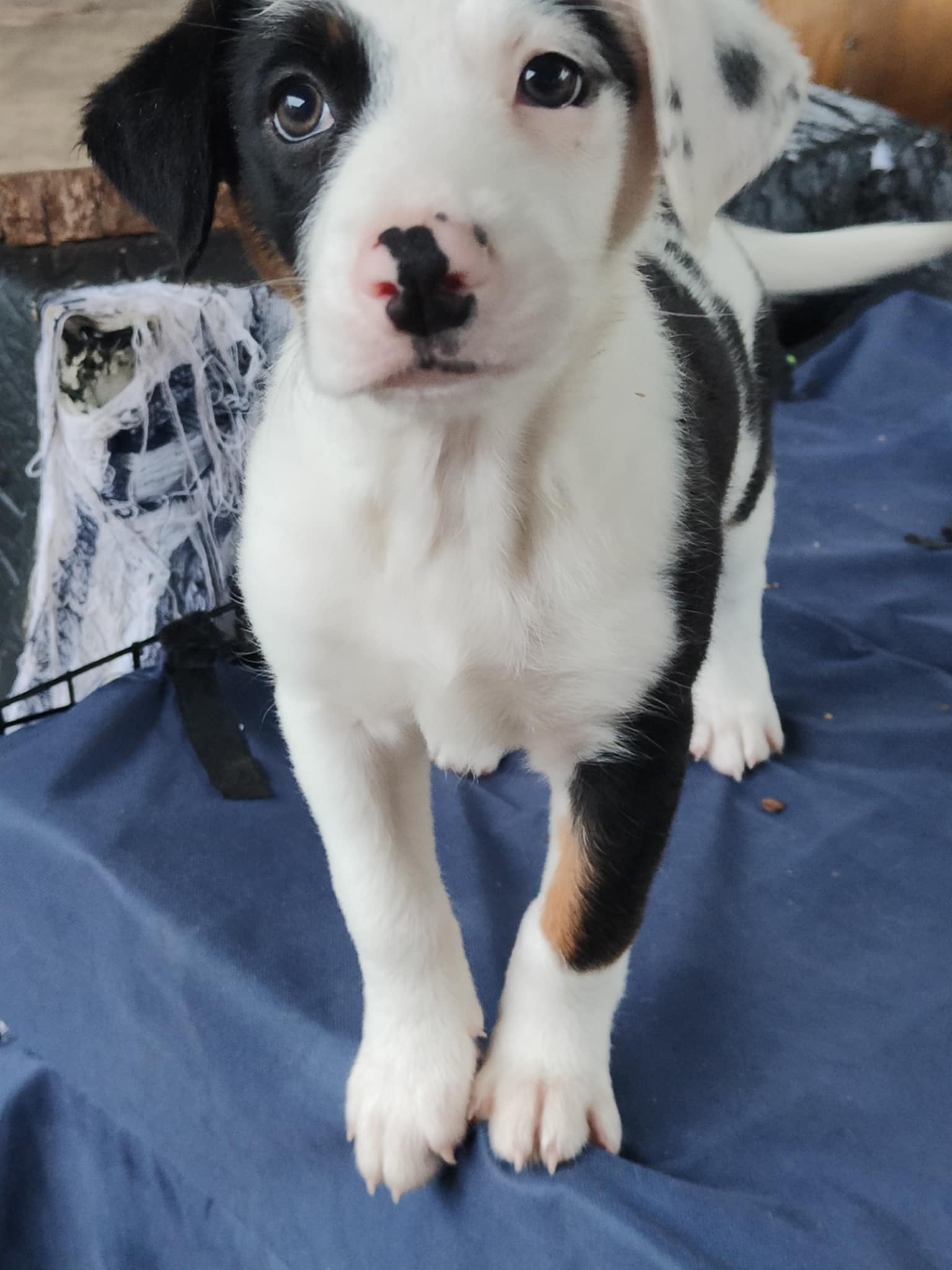 We have a mix of black and white, chocolate and white and black, white and brown.