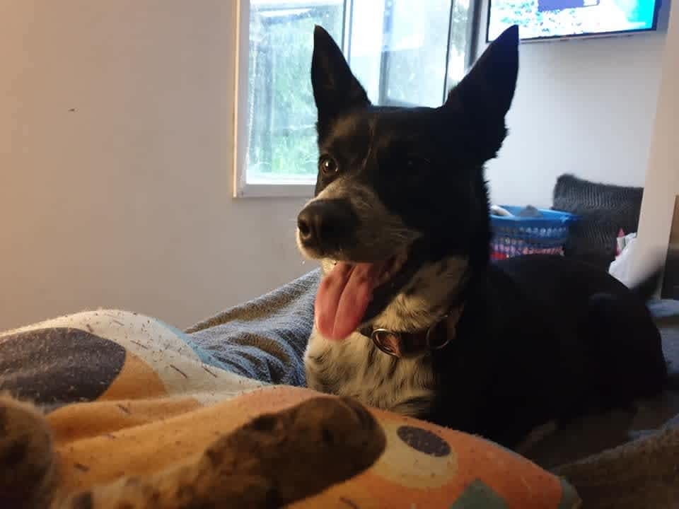 Mum (Biscuit) Border Collie x Kelpie. Beautiful temperament. Great with kids and cats.