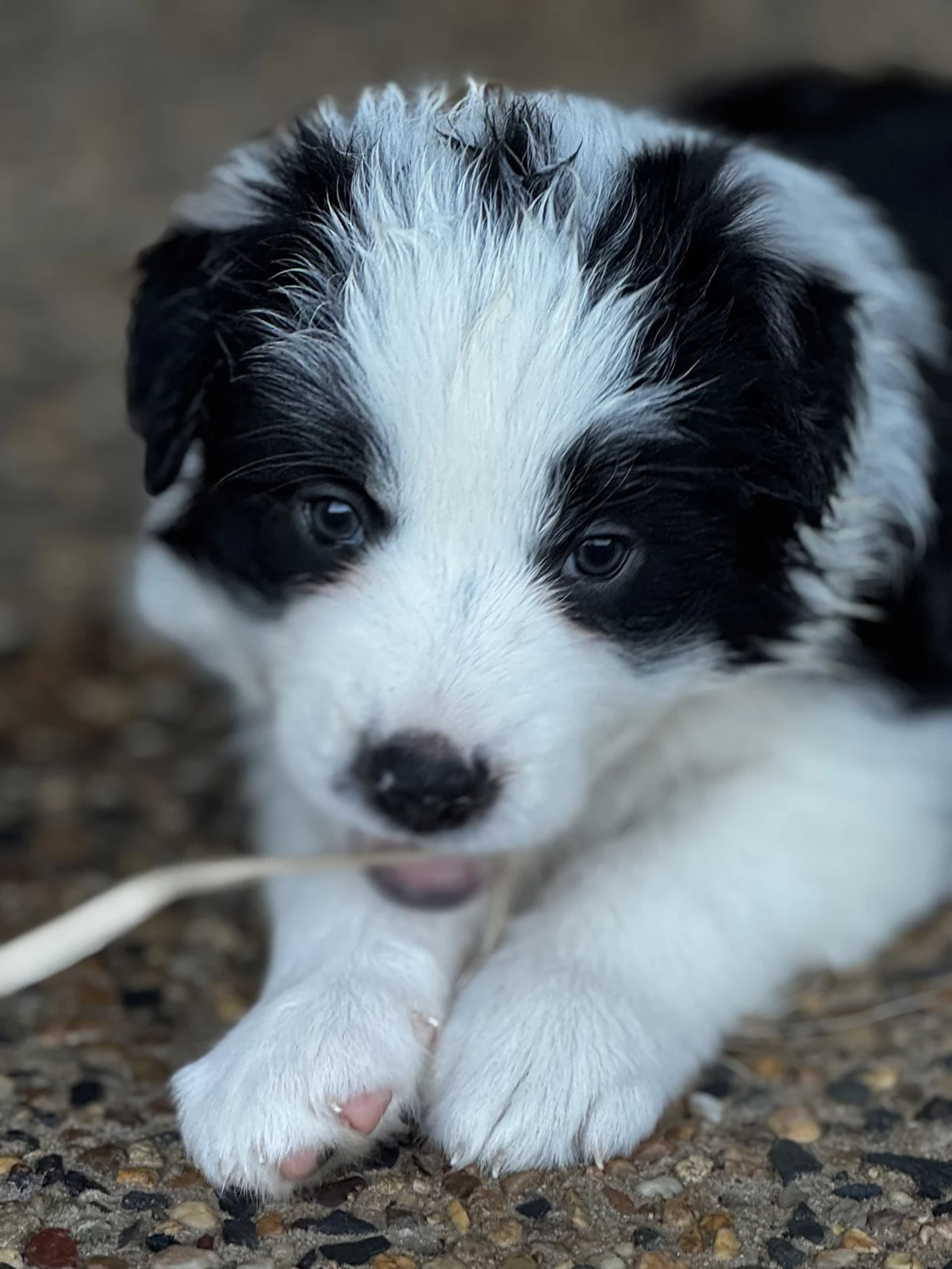 The puppies are six weeks old and have been vaccinated, microchipped, and vet checked for peace of mind. They are growing well in a caring home environment with regular handling and early social time. Border Collies are bright, loyal dogs and suit homes that can provide time, guidance, activity, and mental stimulation as they grow. These puppies will be ready to go to their new homes soon. We are seeking loving, responsible owners who can offer routine, training, and long-term commitment for these beautiful pups.