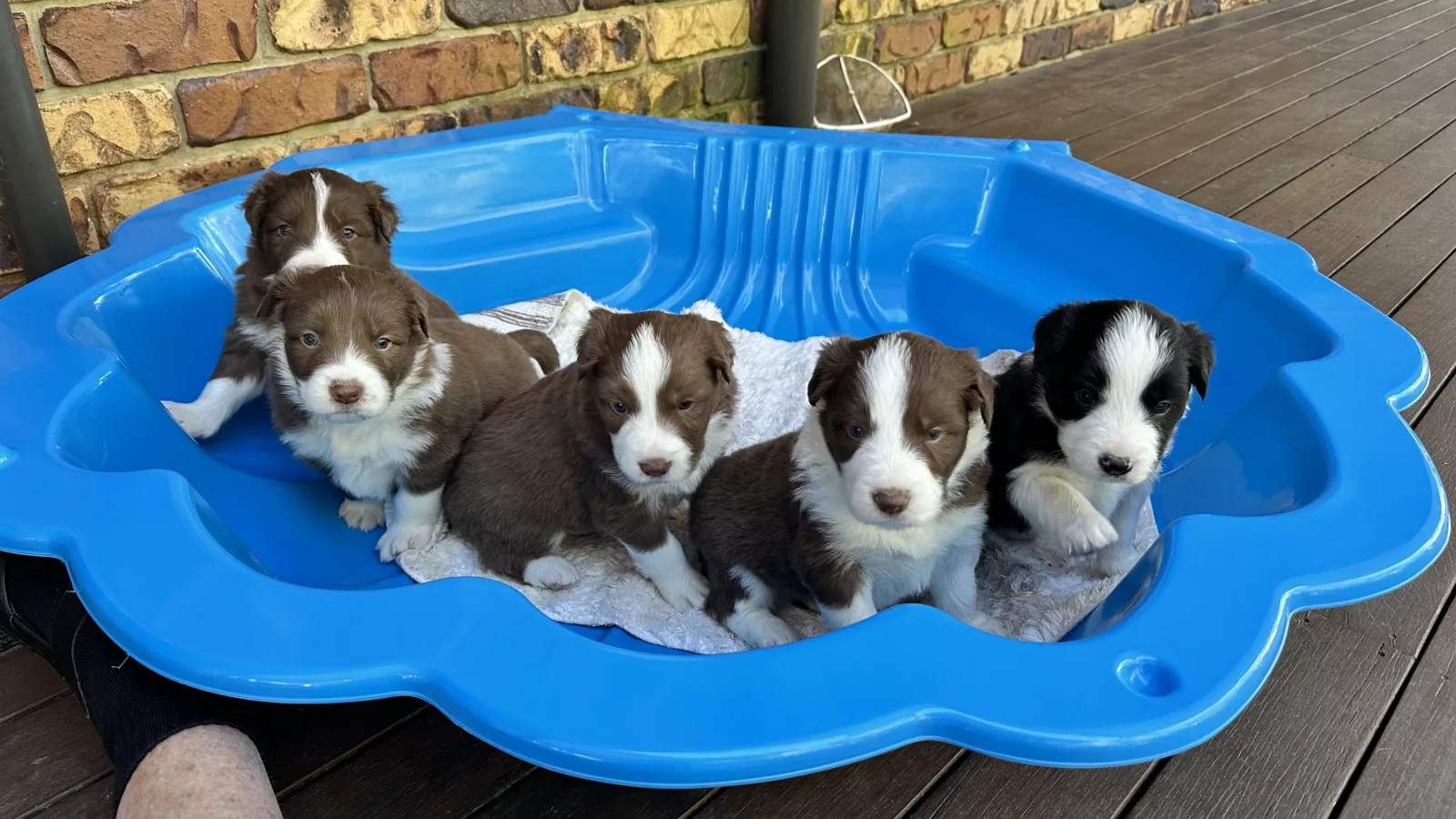 Stunning purebred Border Collie pups, currently 3.5 weeks old, with three males and two females left in this litter. The puppies will be ready to go to their new homes around the 9th to 10th of August.