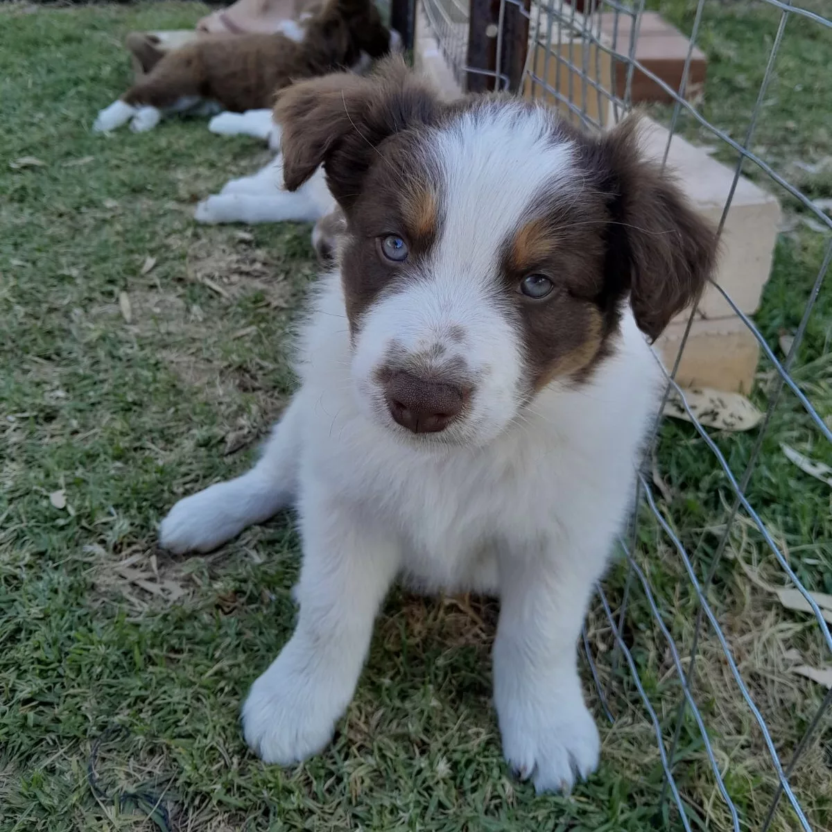 Intelligent, energetic, pure bred brown and white Border Collie puppies. They were raised with children and outside on a rural property with plenty of space to run and play. The pups have grown up in an active environment and received plenty of handling and early interaction.