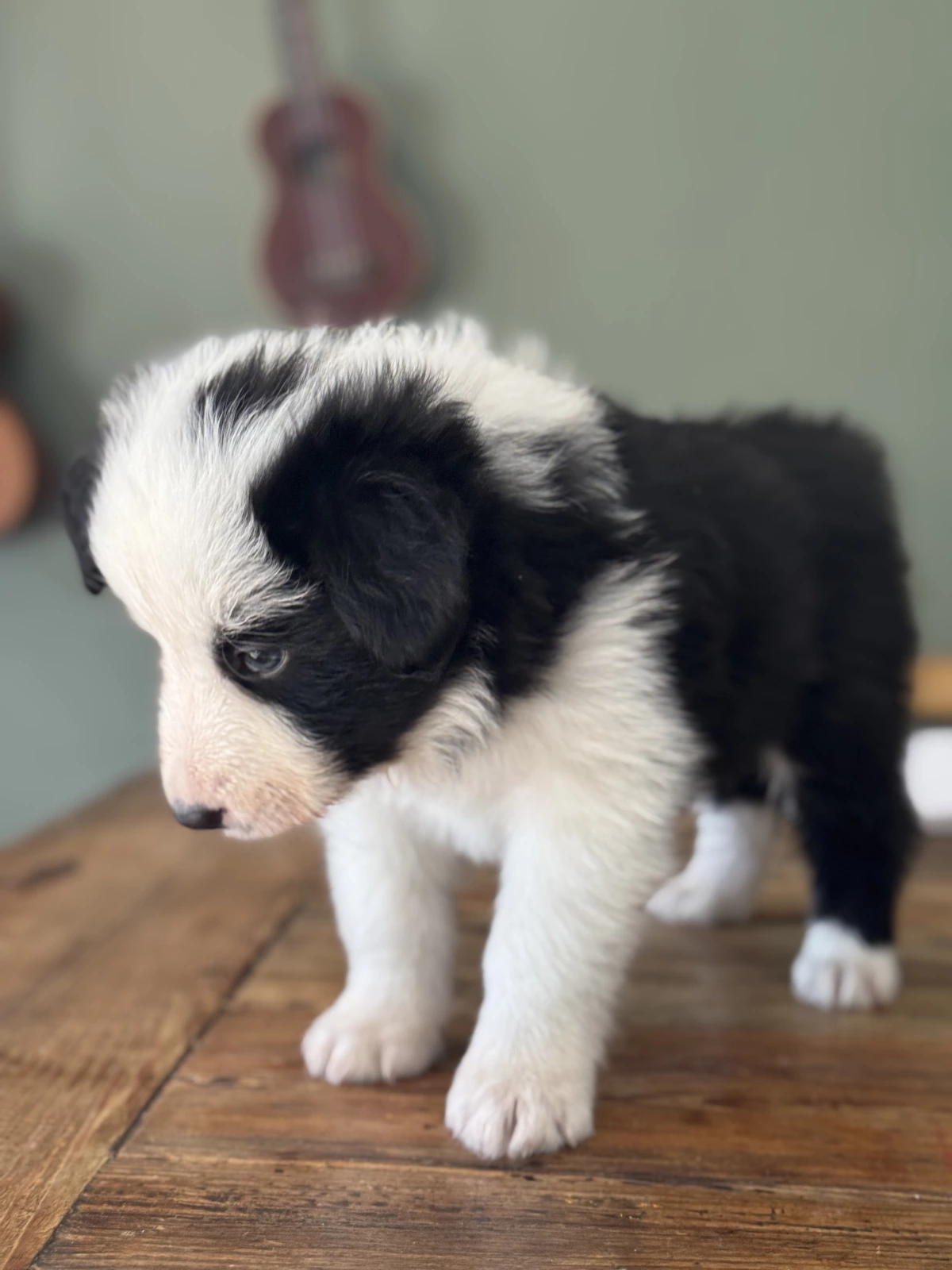 Mum is a very calm brown and white merle Border Collie with a gentle temperament. This pup has been raised in a caring home environment and would suit a family or individual who can offer time, care, training, and steady companionship.
