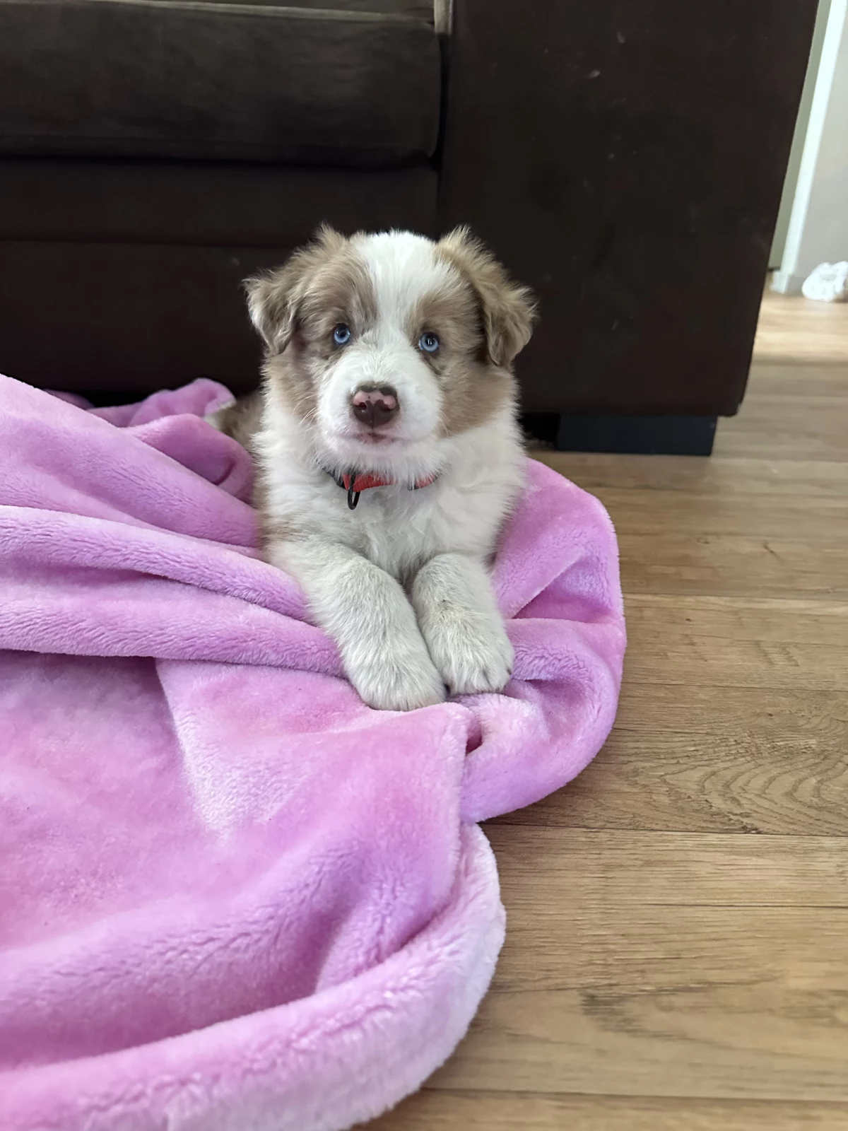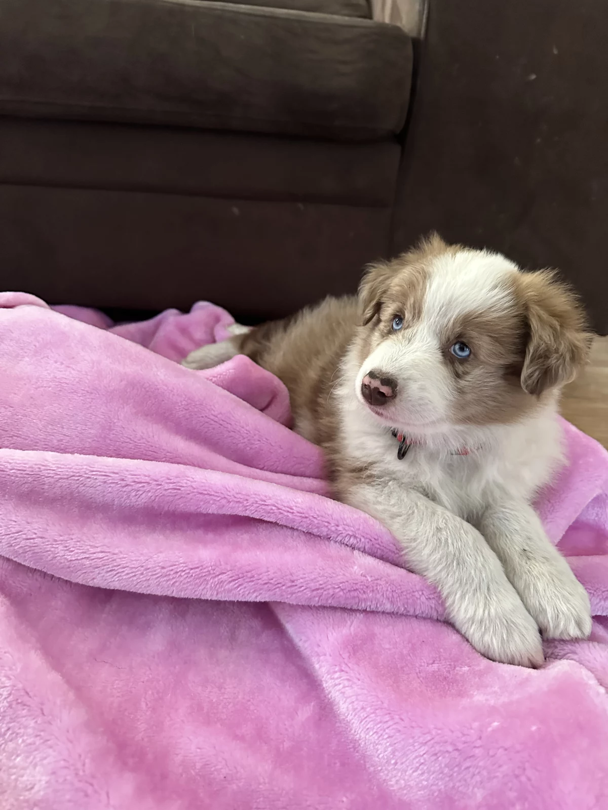 We have 1 purebred male lilac Merle border collie puppy from our litter of 5 left and he is looking for his forever home.