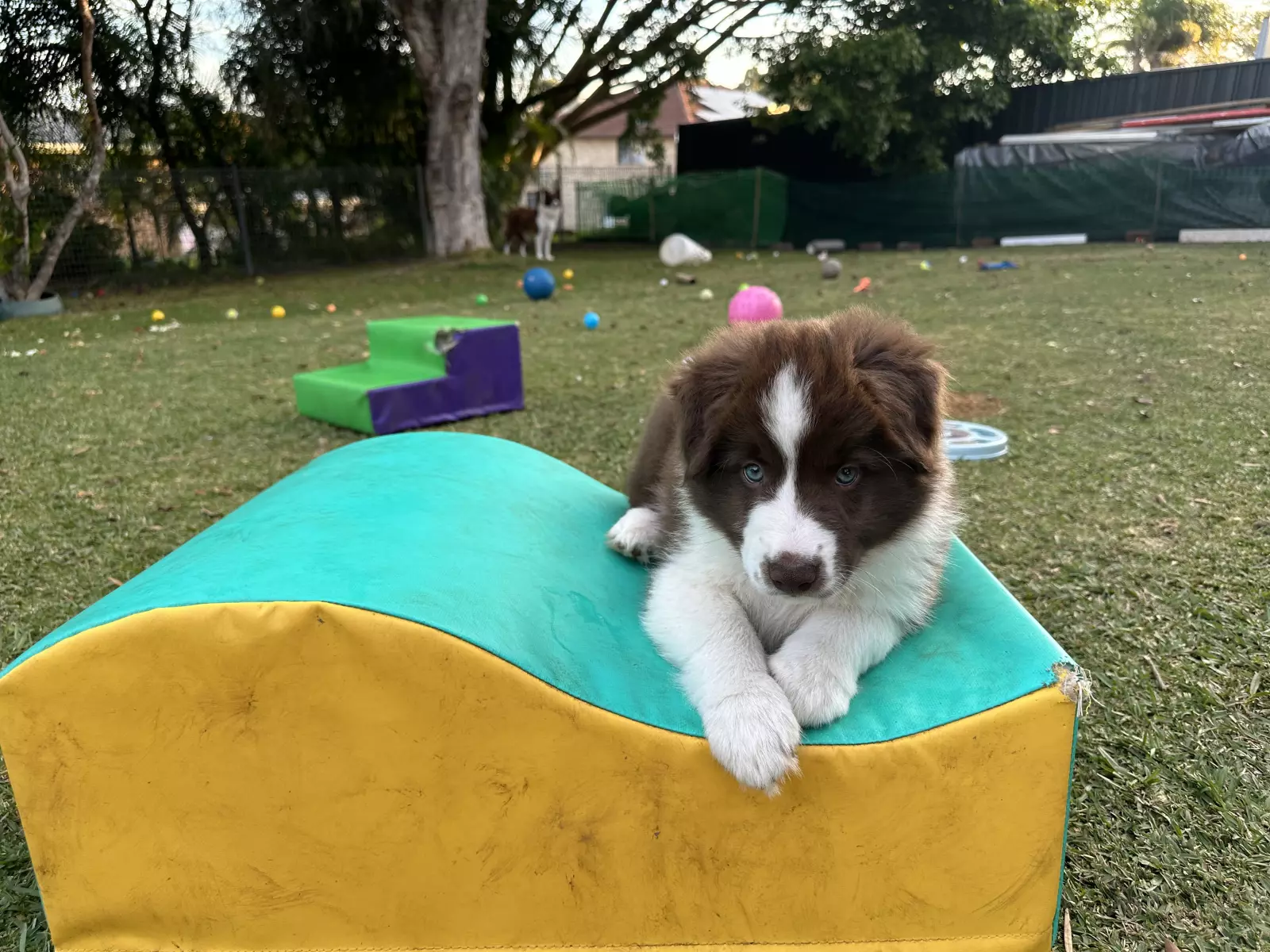 Mum and Dad are both chocolate and white with beautiful natures. Both medium build and medium drive. Both enjoy moderate exercise with great off switches to enjoy spending time with family.