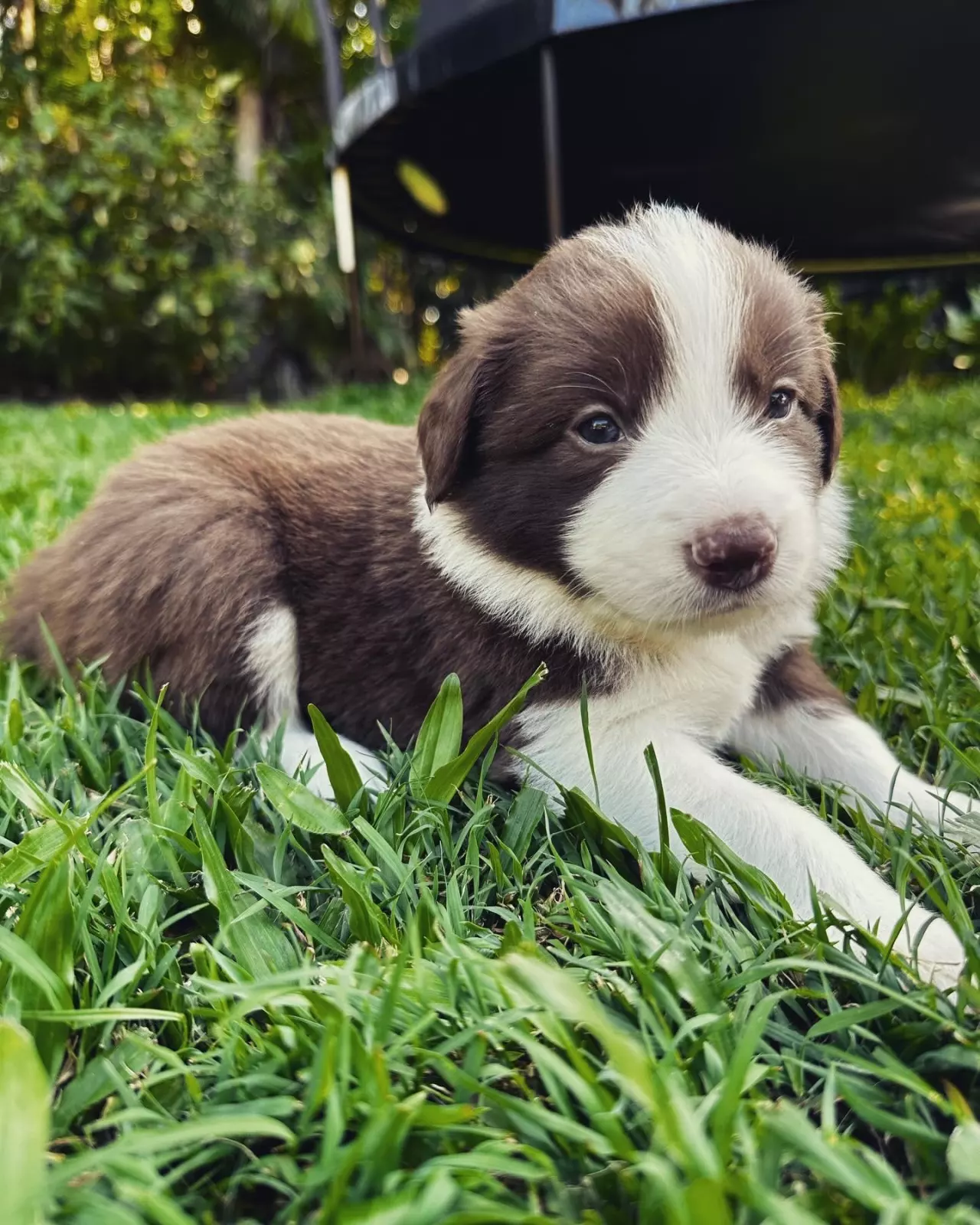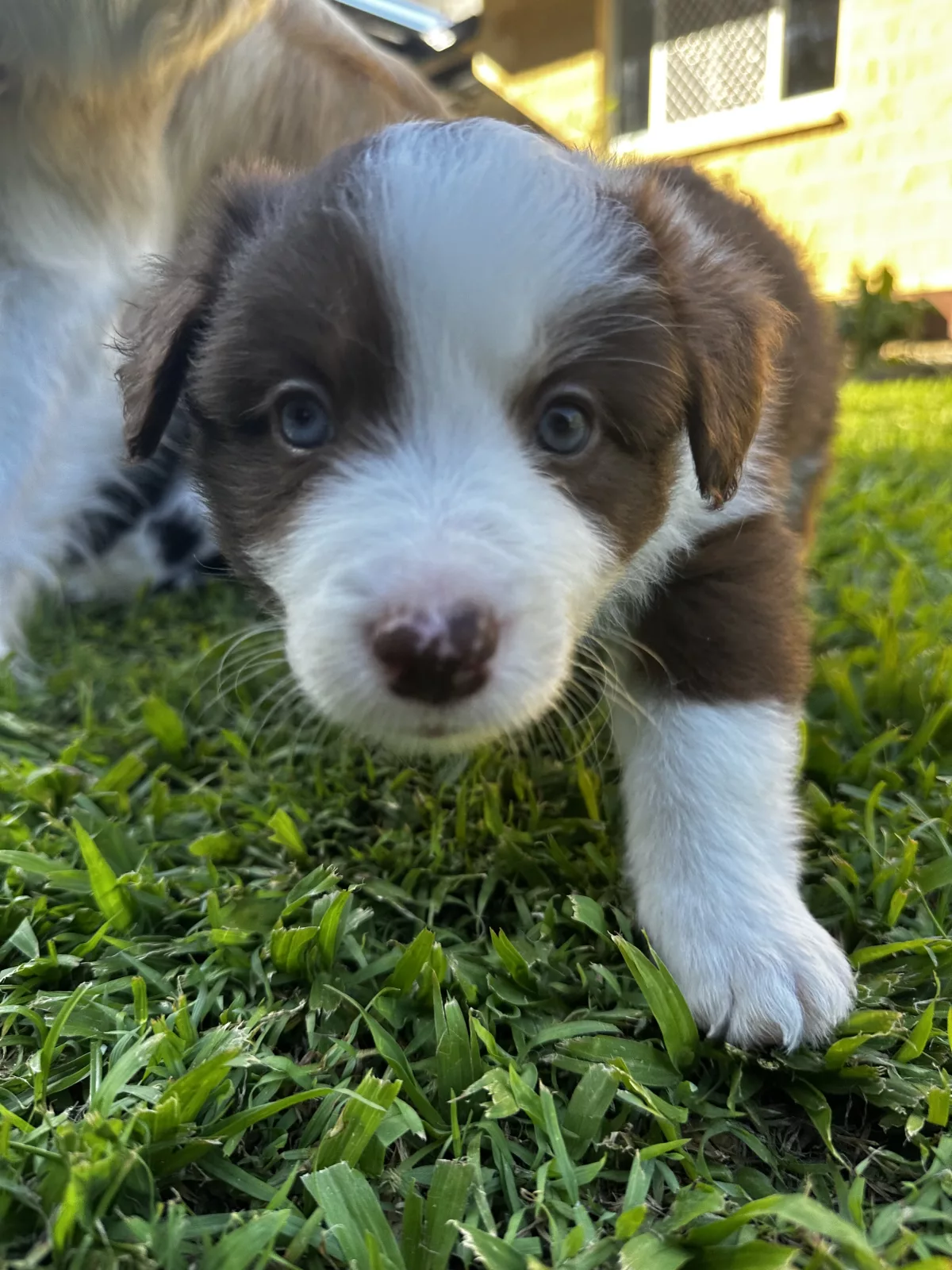 Pup A - boy. Chocolate. One blue eye, one hazel eye.
