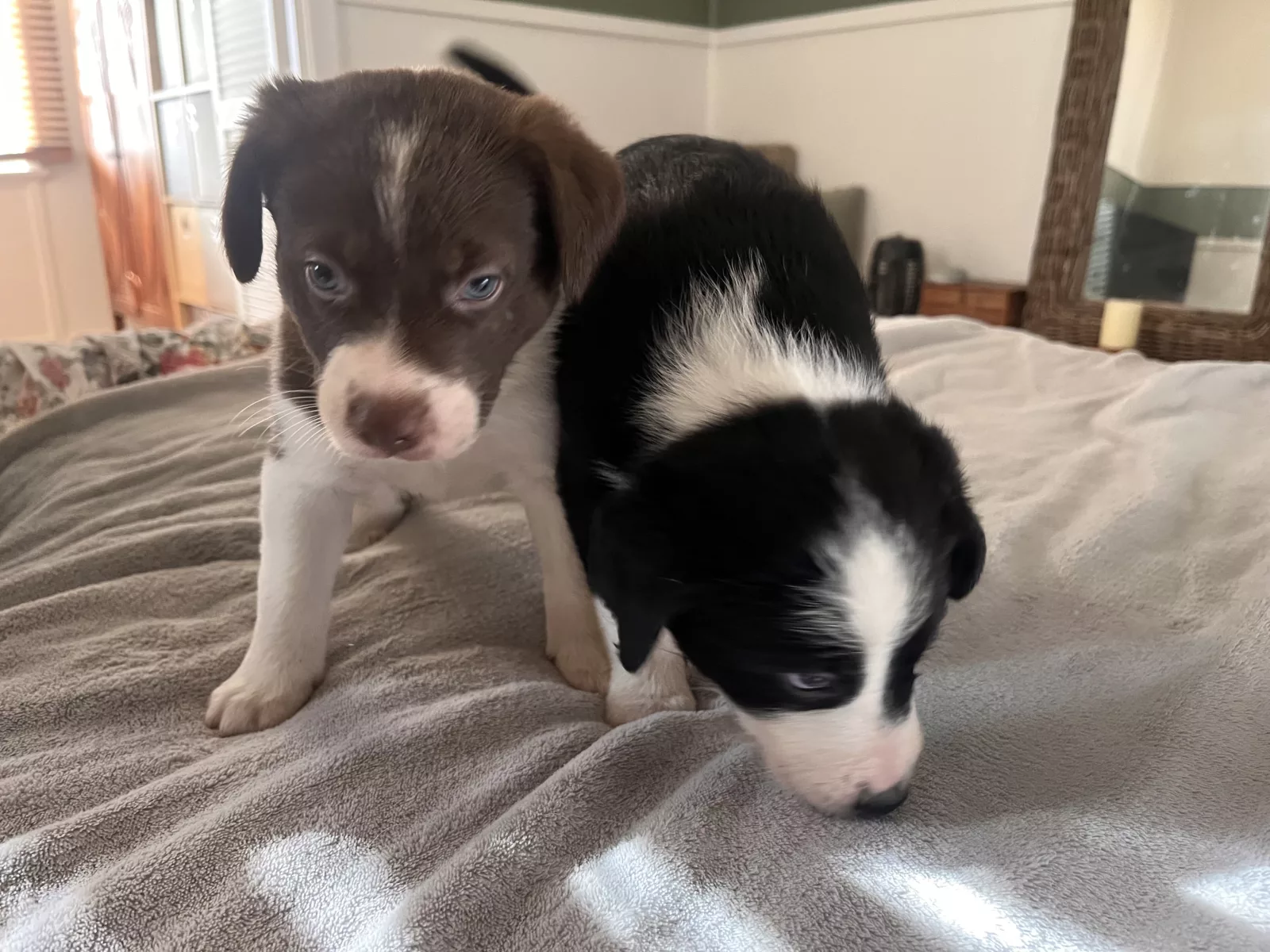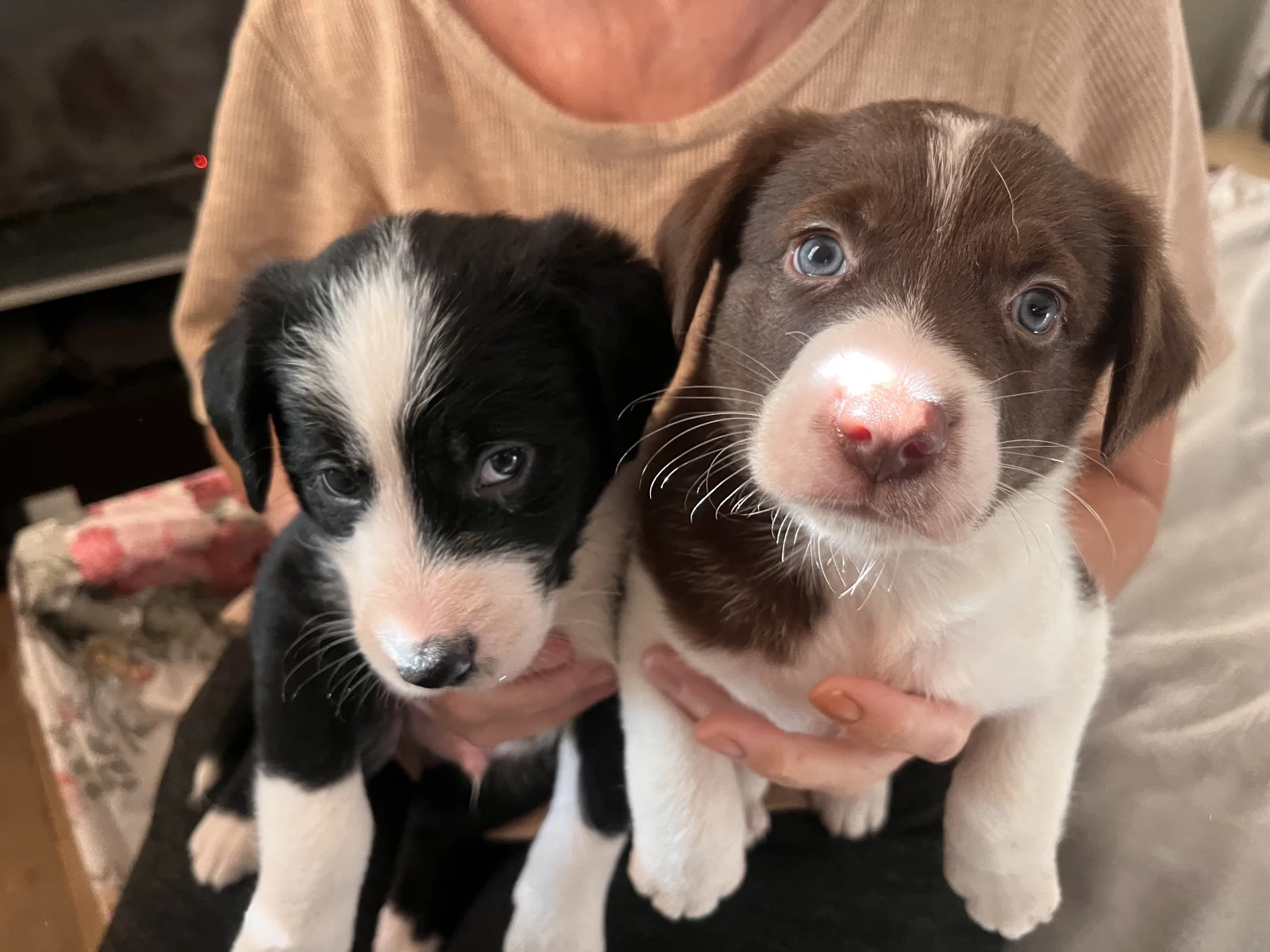 We have two males left: one chocolate and white and one black and white.