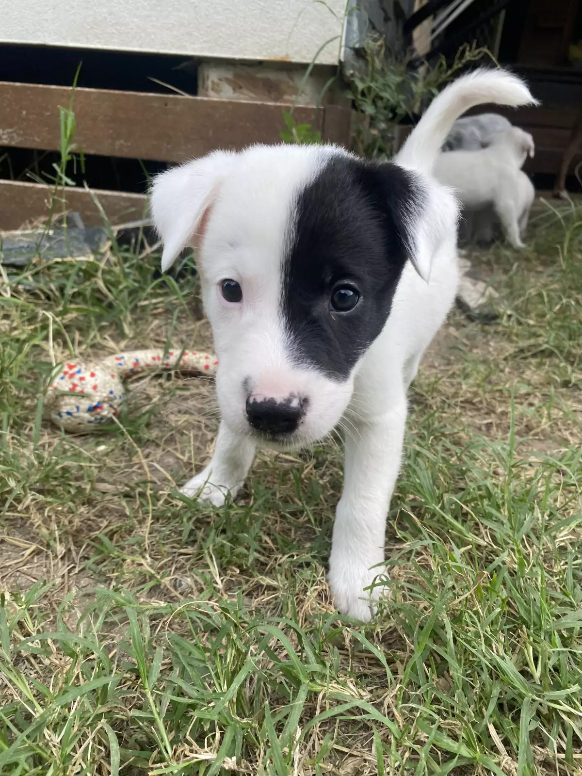 Photo 6: Patchy, stumpy tailed, longish haired with with black eye patch