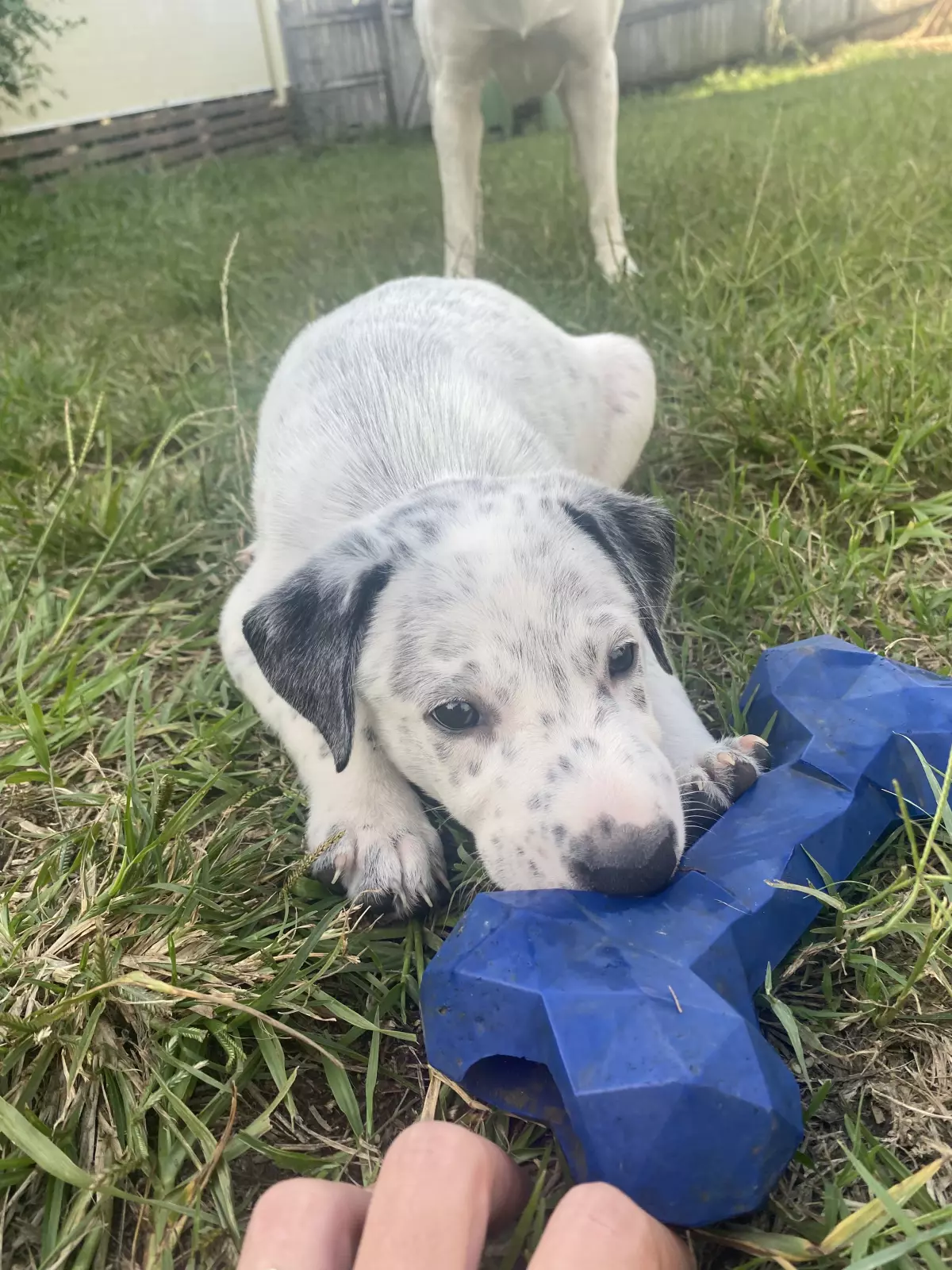 Photo 8 & 9: Motley, male, stumpy tailed, short haired speckled colour with black stump