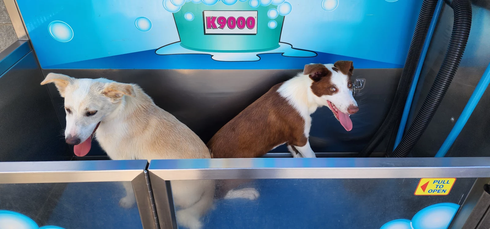 Dogs have access to: warm bedding, water at all times, ample space to exercise, natural light